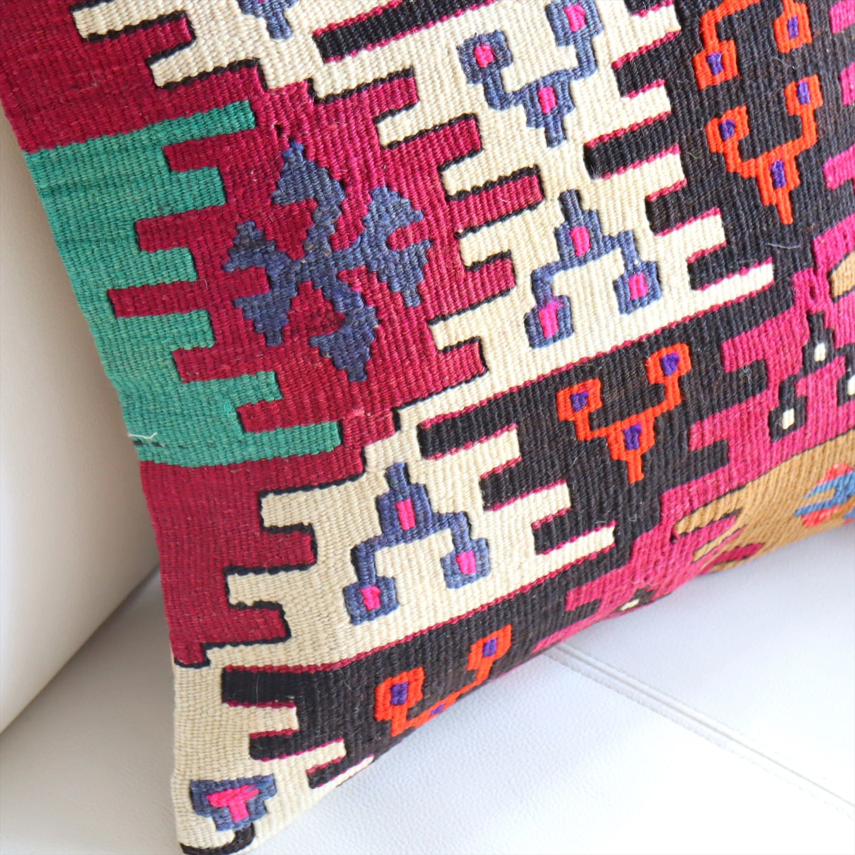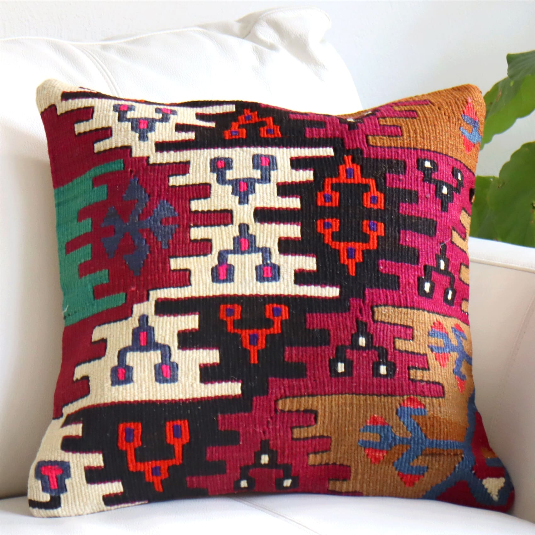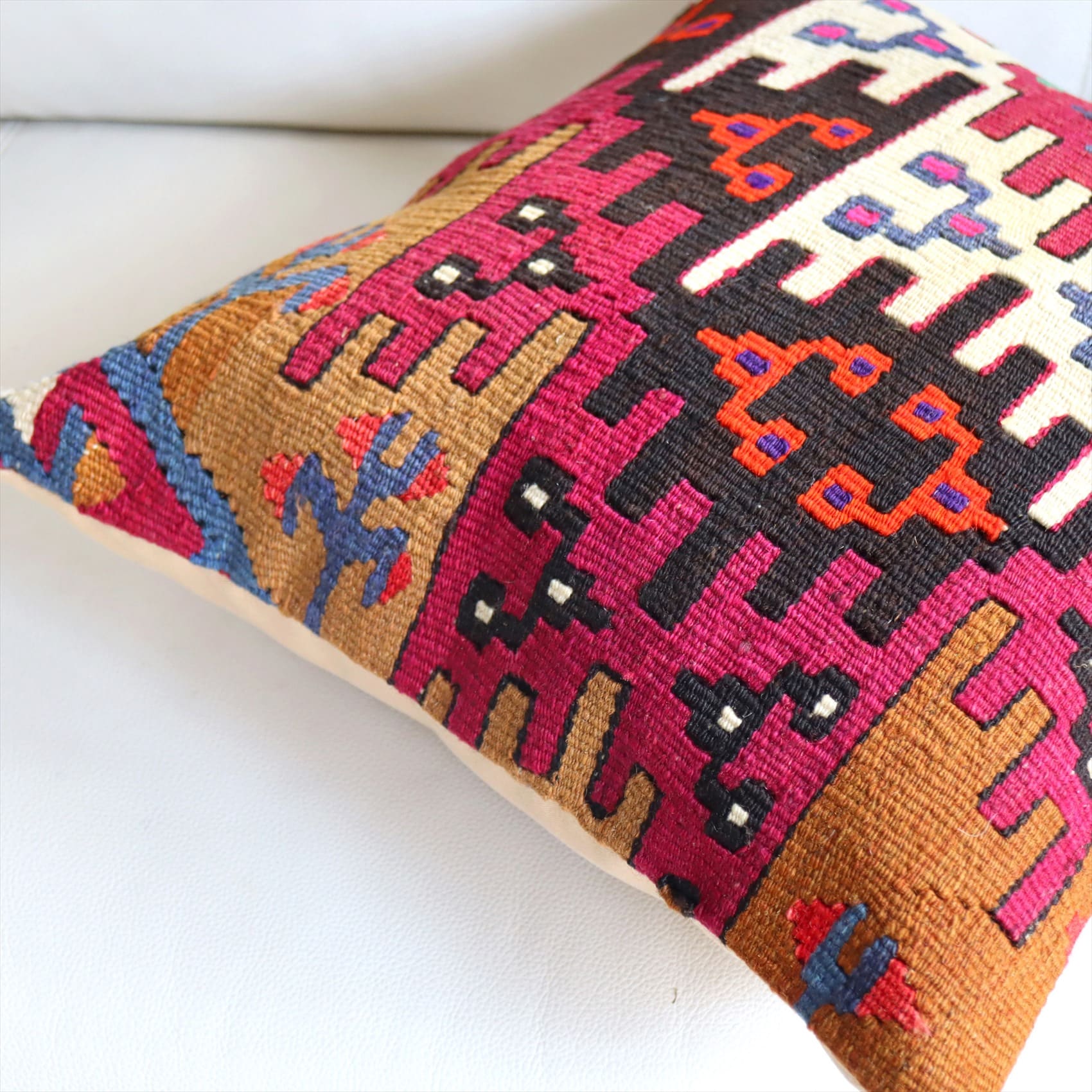 オールドキリム クッションカバー 40cmサイズ ジブリヒサル チフカナット ピンクパープル