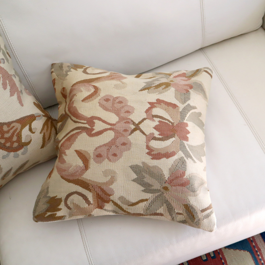 4. オールドキリムクッションカバー 40cm /Old Kilim Cushion ルーマニア ベージュ