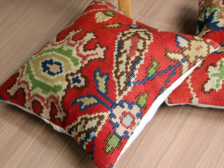 オールドキリム クッションカバー41×40cm ブルガリア・花とつる草 Old Kilim Cushion