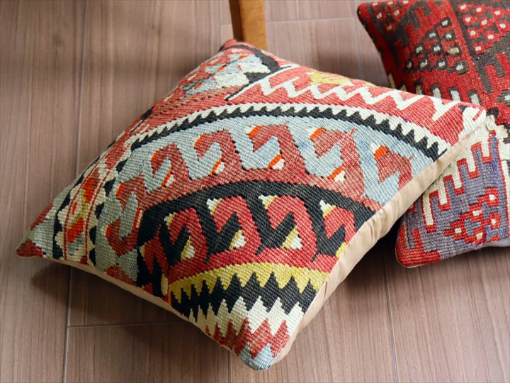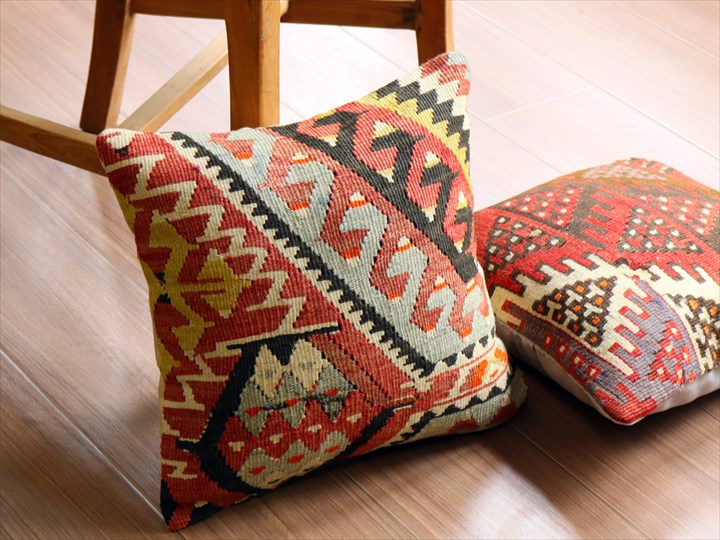 | 【オールドキリム】古い時代(主に1960-1980年代)に、一般の家庭で織られたウールの手織りキリムを表面に使ったクッションカバーです。擦り切れた個所や、日焼け、修理のあとなどがある場合がございますことをご了承ください。クッションはトルコで縫製されていて、縫製前にはきれいにクリーニングしてあります。 クッションカバーの裏面は無地のコットン、色はそれぞれ異なりますので表記してあります。 【お手入れについて】オールドキリムの染料が色落ちする場合がありますのでほかのものと一緒に洗わないようご注意ください。液体洗剤で押し洗いしたあと、よくすすいで、フラットにして乾かしてください。 |