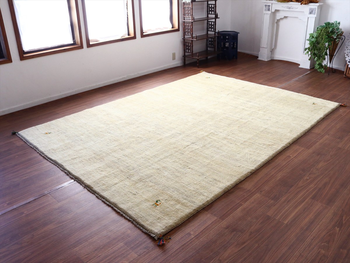 - ギャッベ Gabbeh ナチュラルアイボリー297×210cm イラン産 四隅に動物モチーフ 特大サイズ