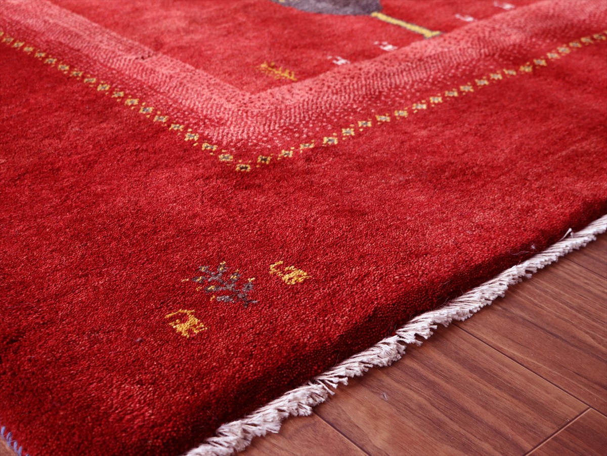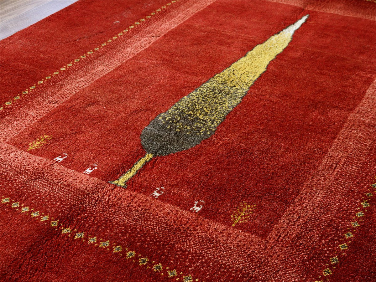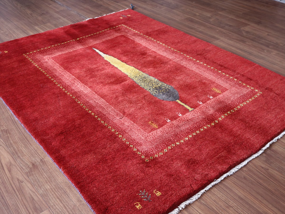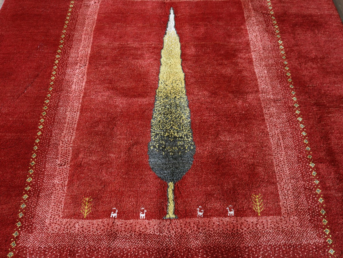 ギャッベ Gabbeh レッド198×155cm イラン産 糸杉と動物と生命の樹