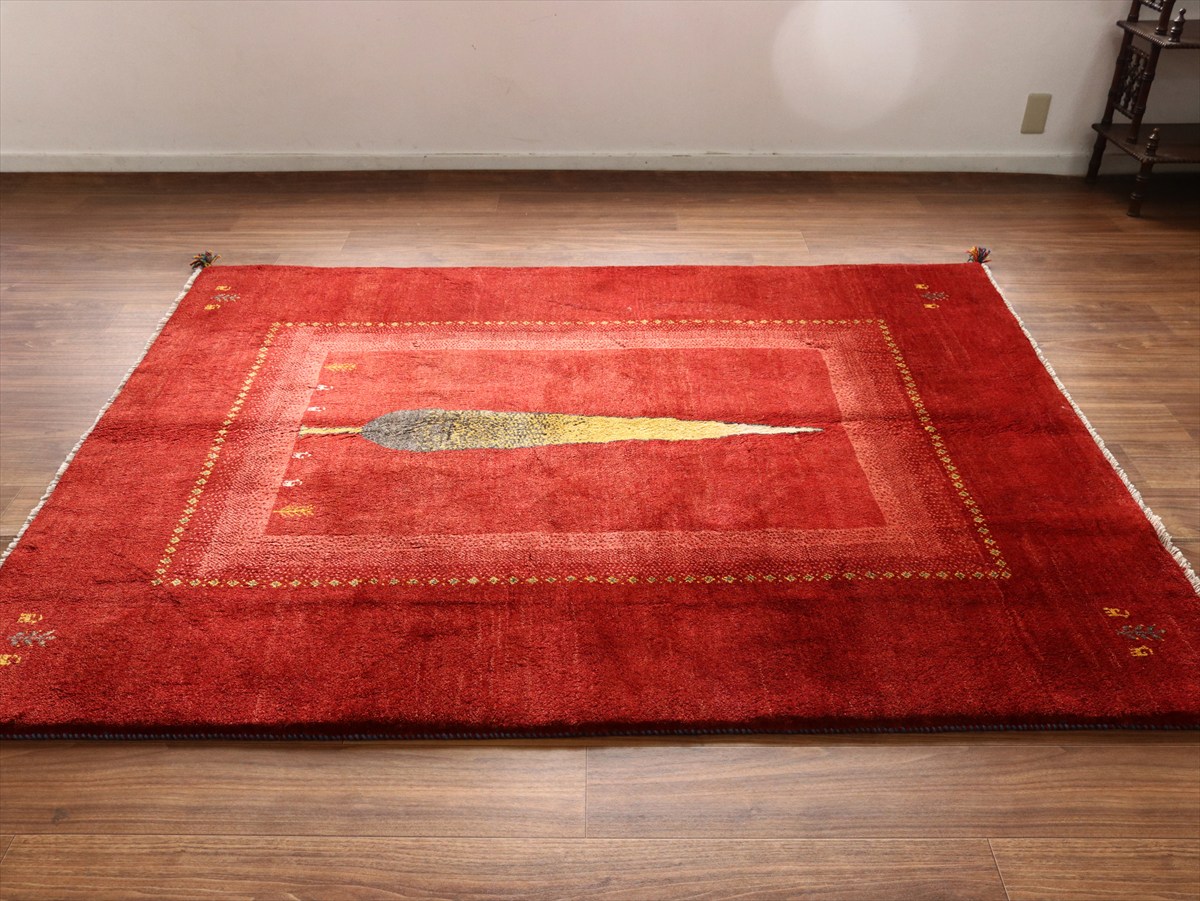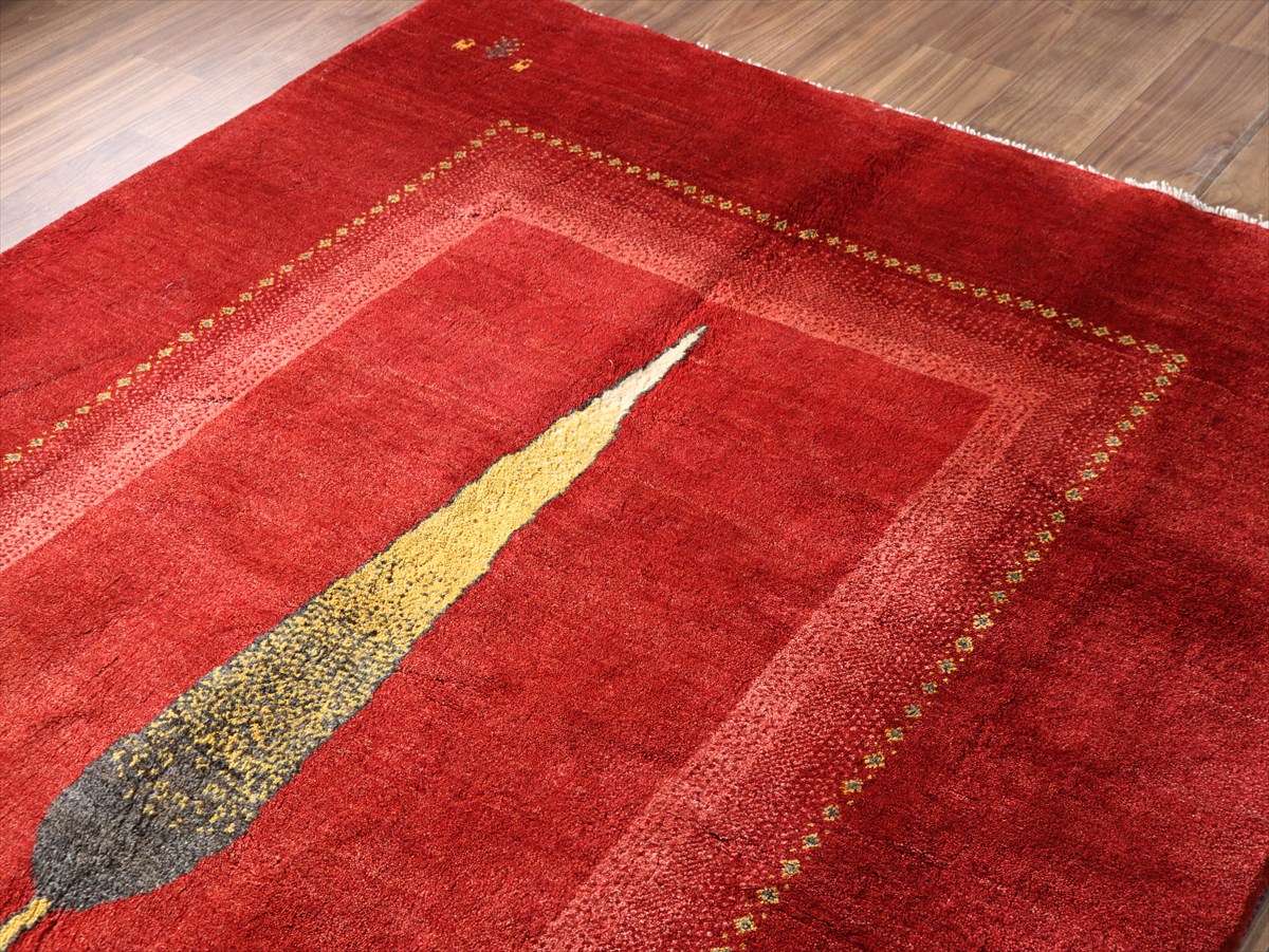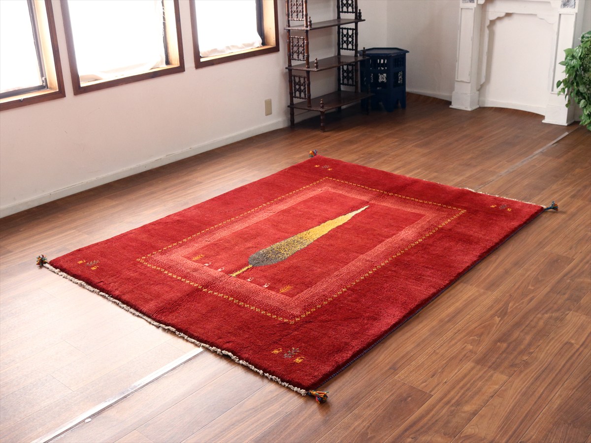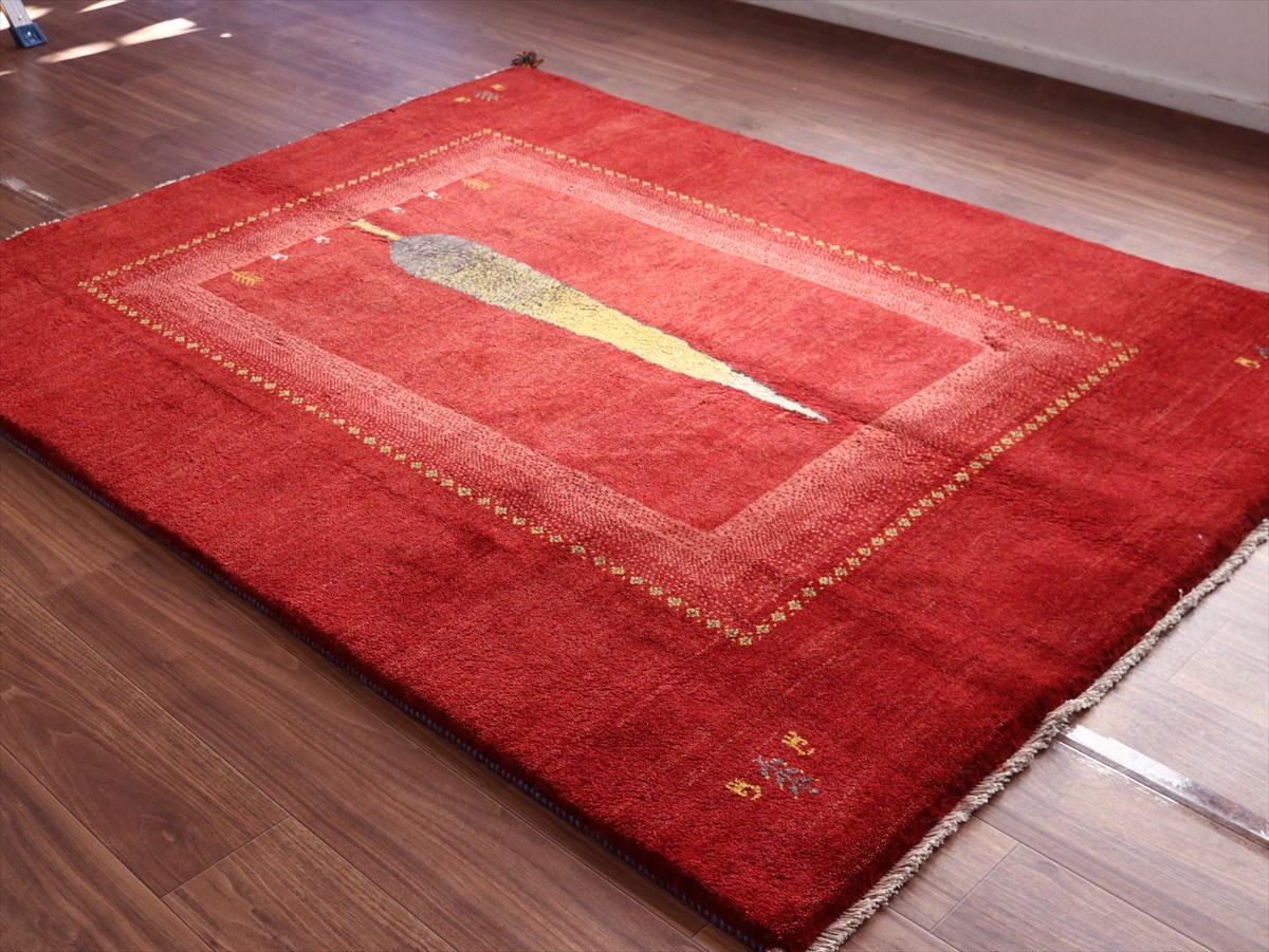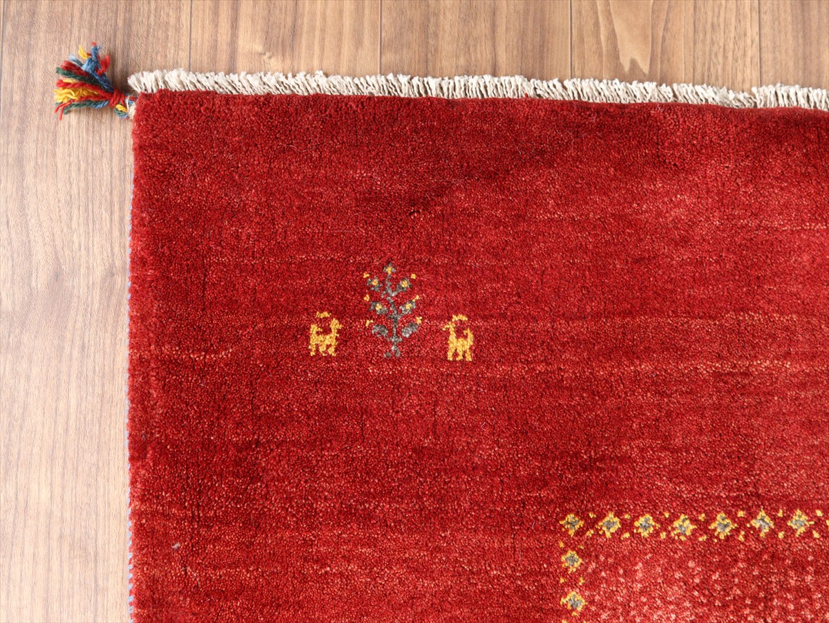 ギャッベ Gabbeh レッド198×155cm イラン産 糸杉と動物と生命の樹
