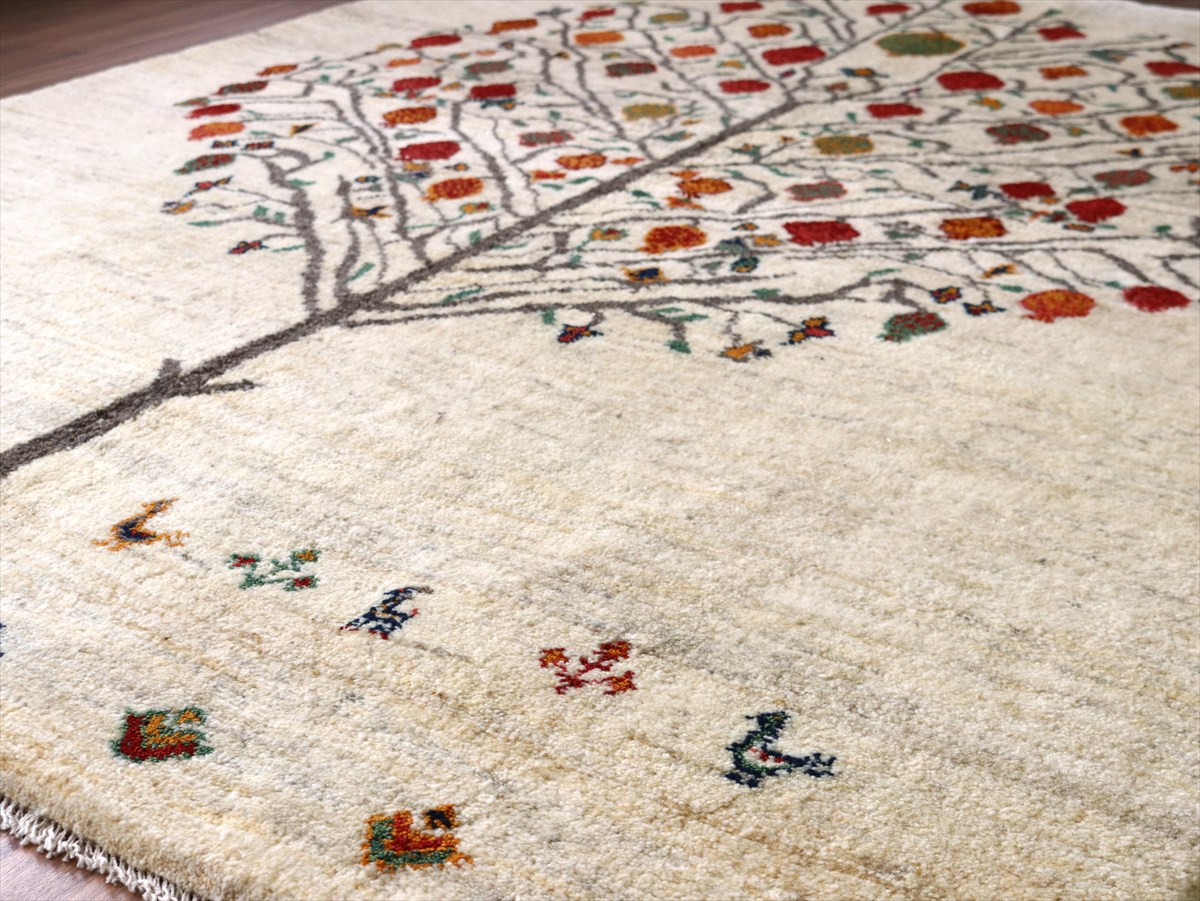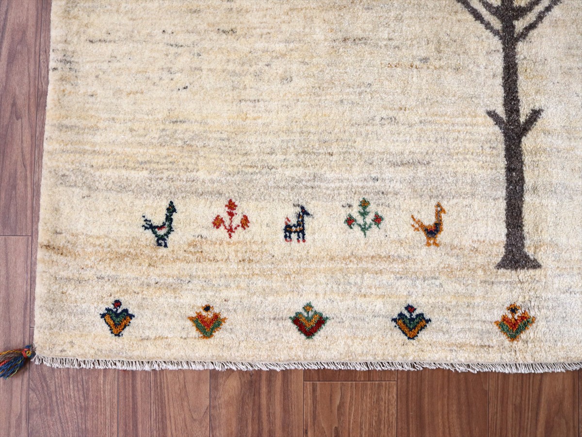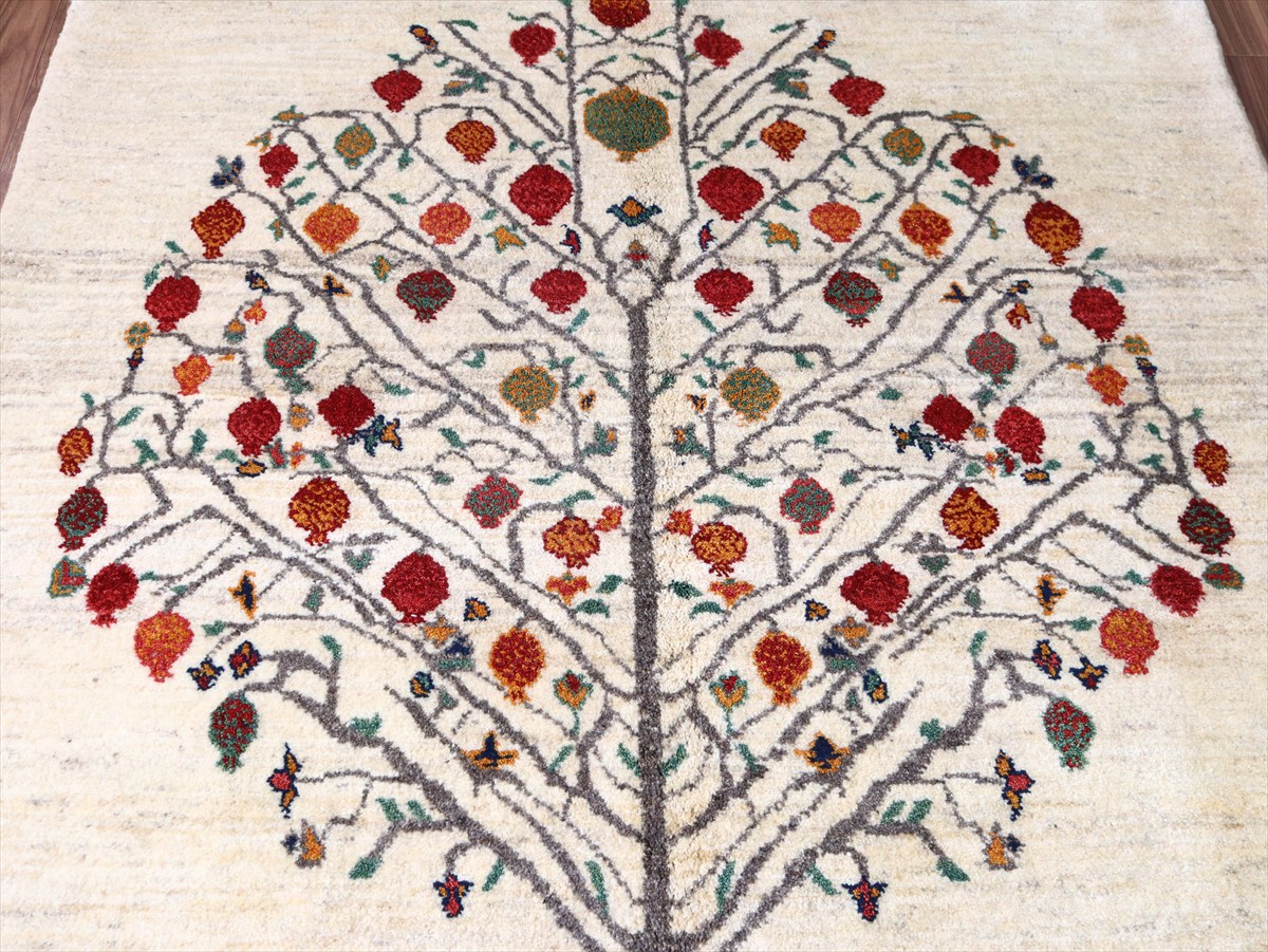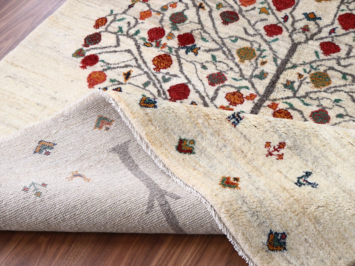 - ギャッベ Gabbeh ナチュラルアイボリー198×160cm イラン産 ザクロの樹と鳥と動物