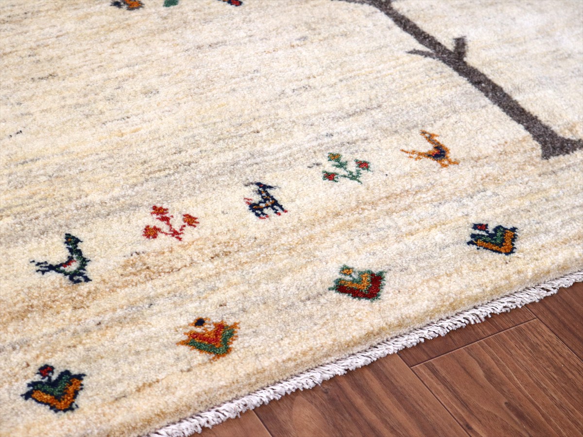 ギャッベ Gabbeh ナチュラルアイボリー198×160cm イラン産 ザクロの樹と鳥と動物