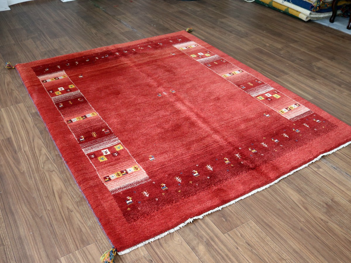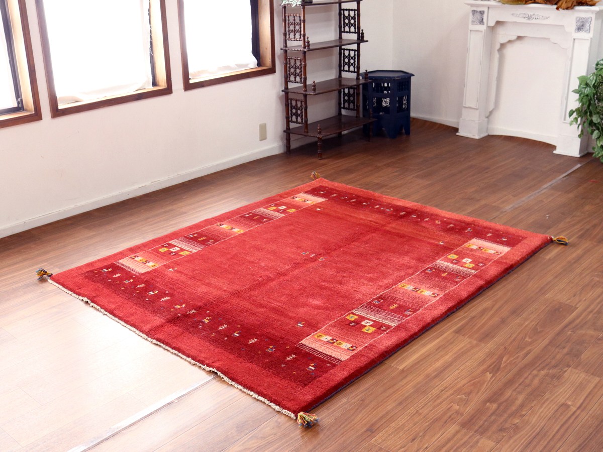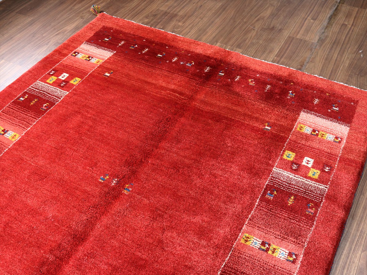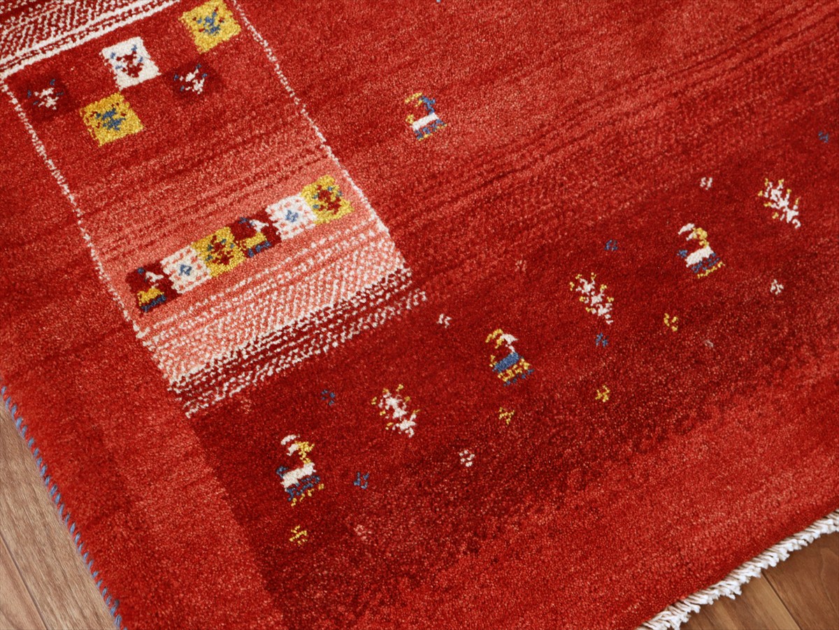 ギャッベ Gabbeh レッド192×157cm イラン産 カラフルな動物と生命の樹
