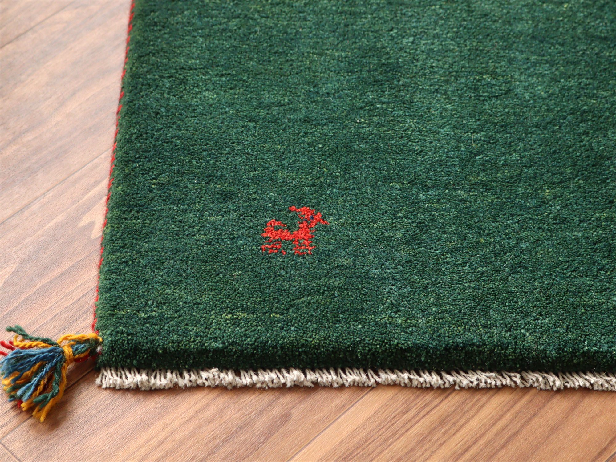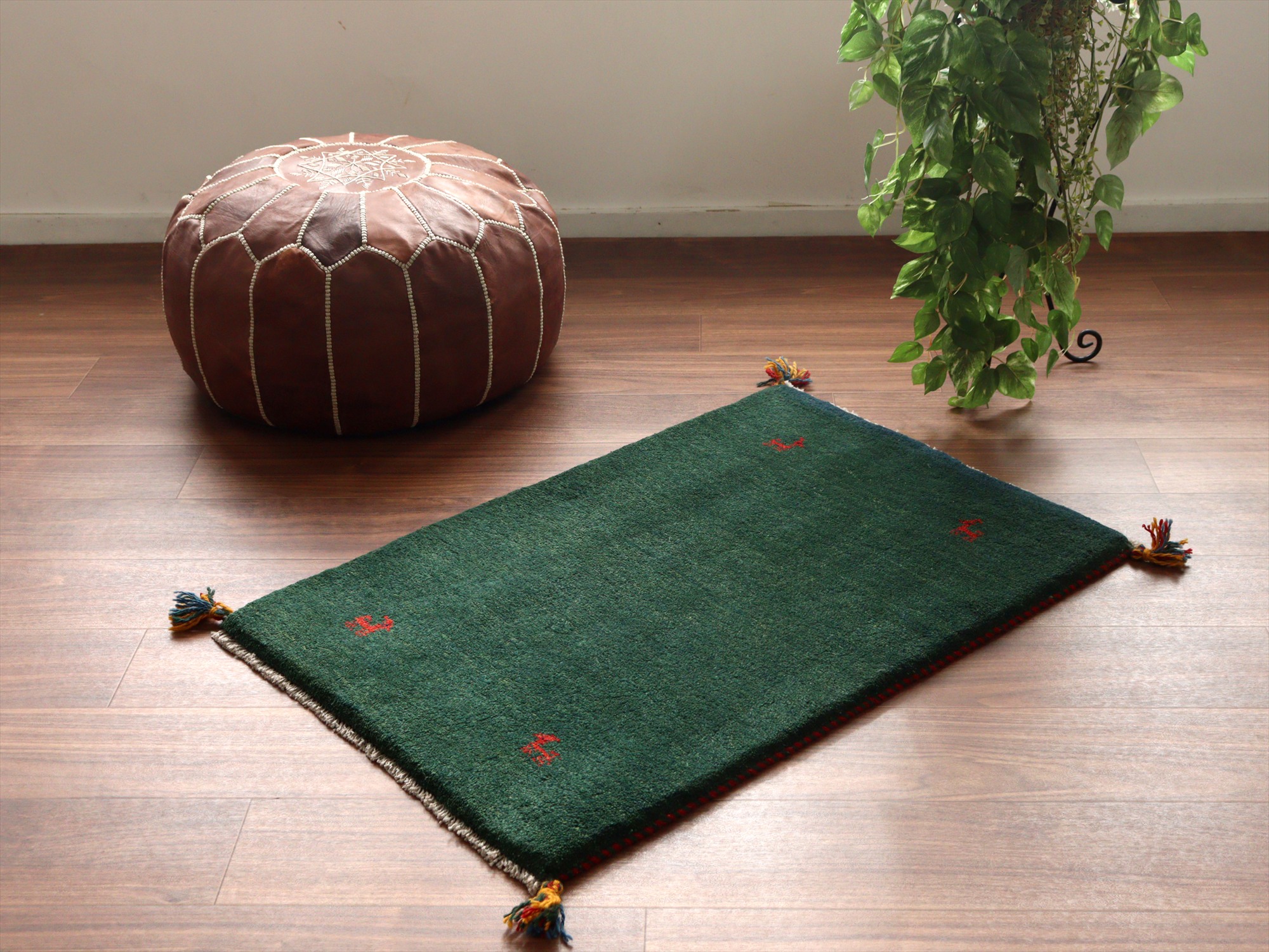 ギャッベ イラン産手織りラグ 90x60cm グリーン シンプルモチーフ