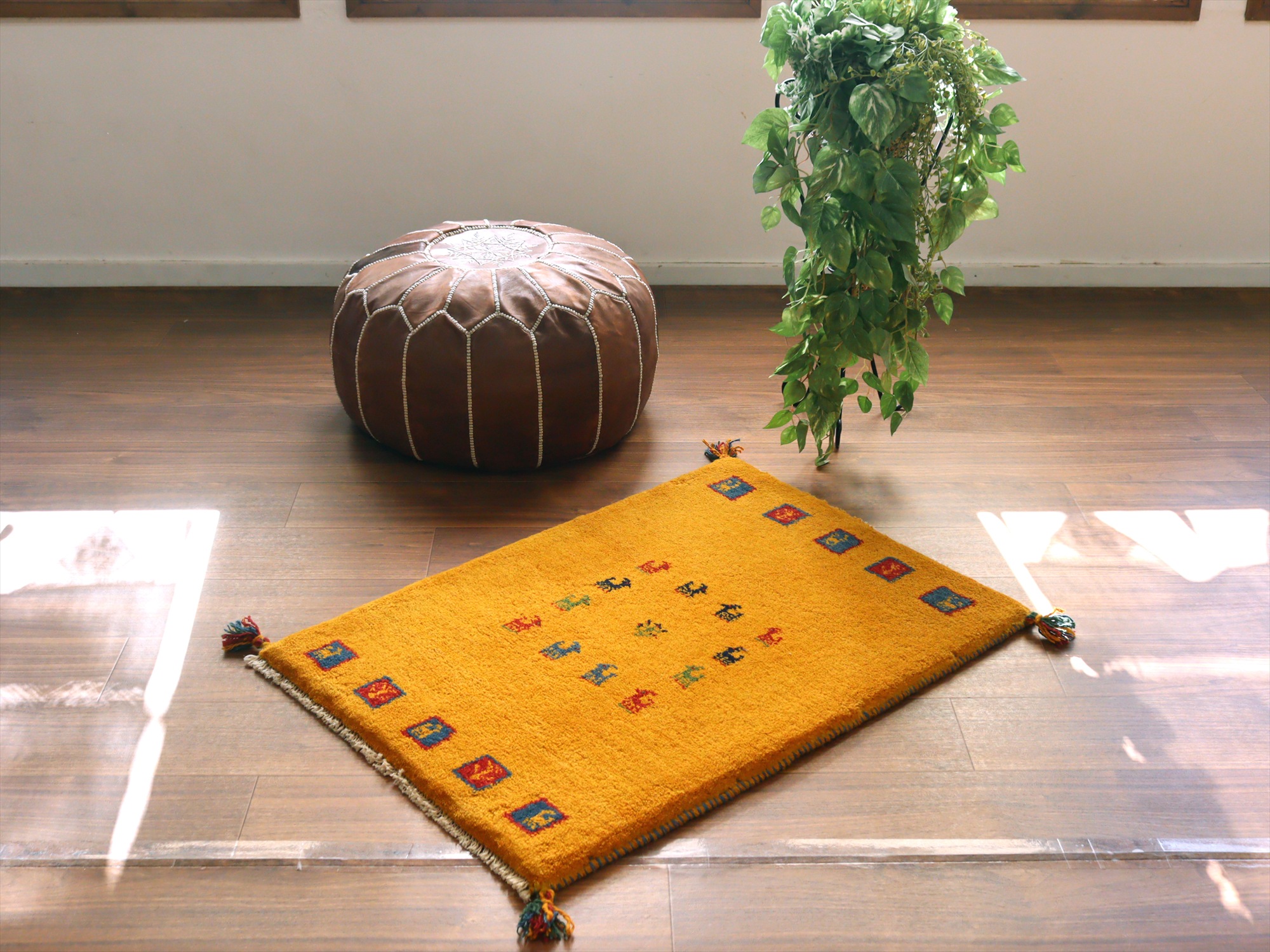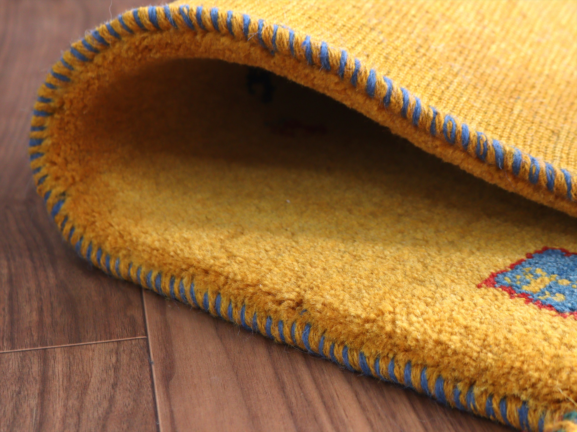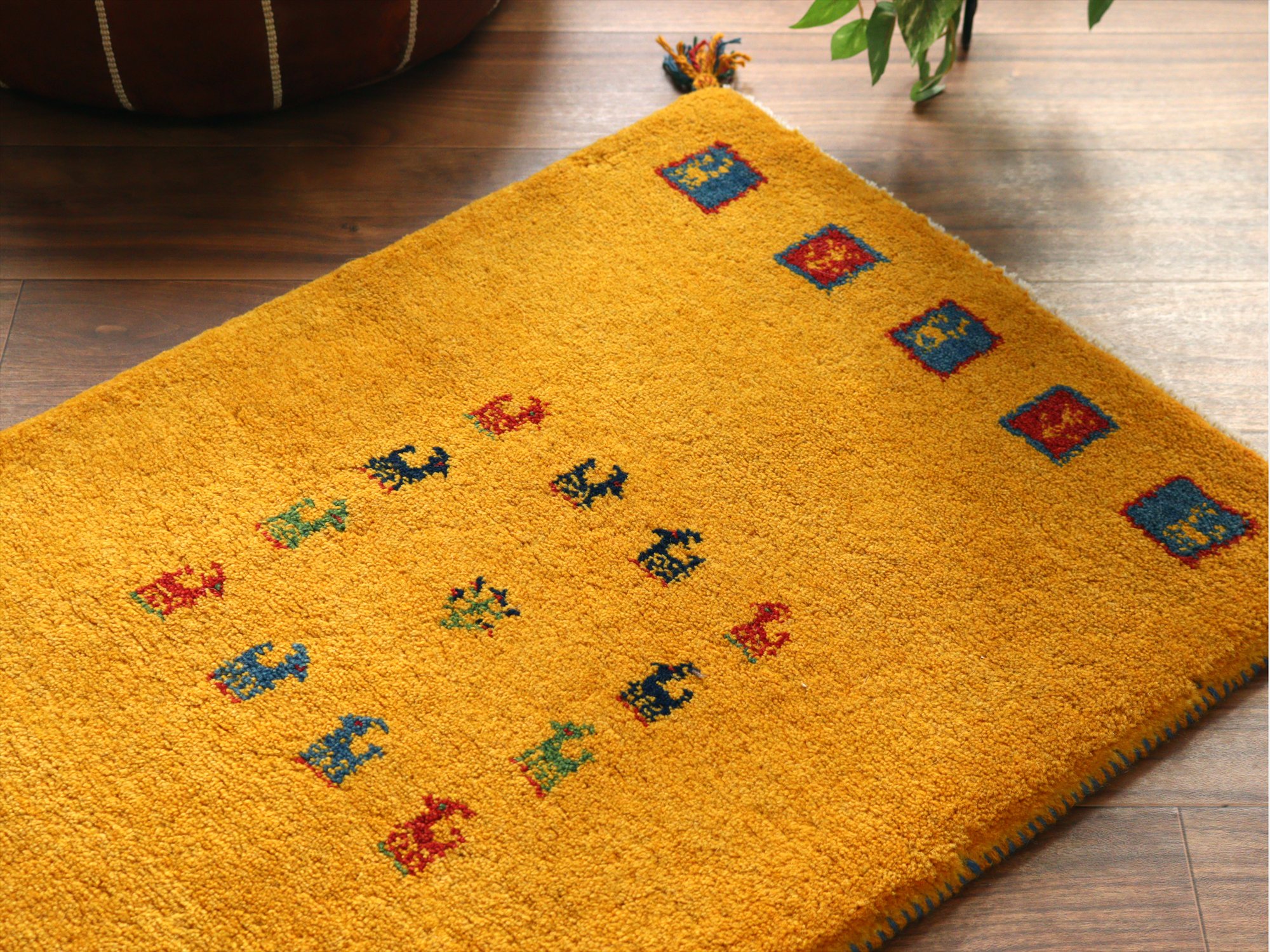ギャッベ イラン産手織りラグ 90x65cm イエロー タイル