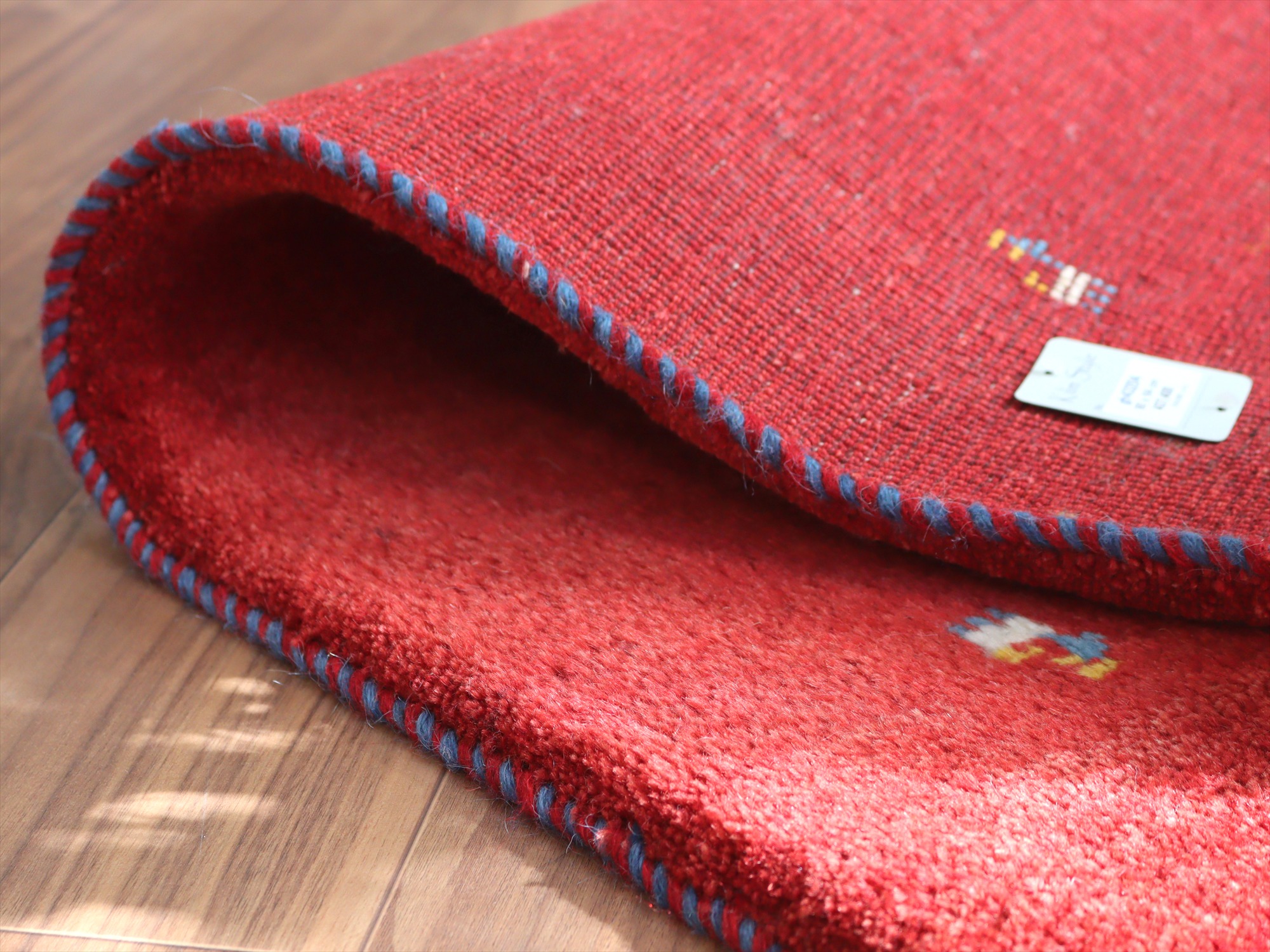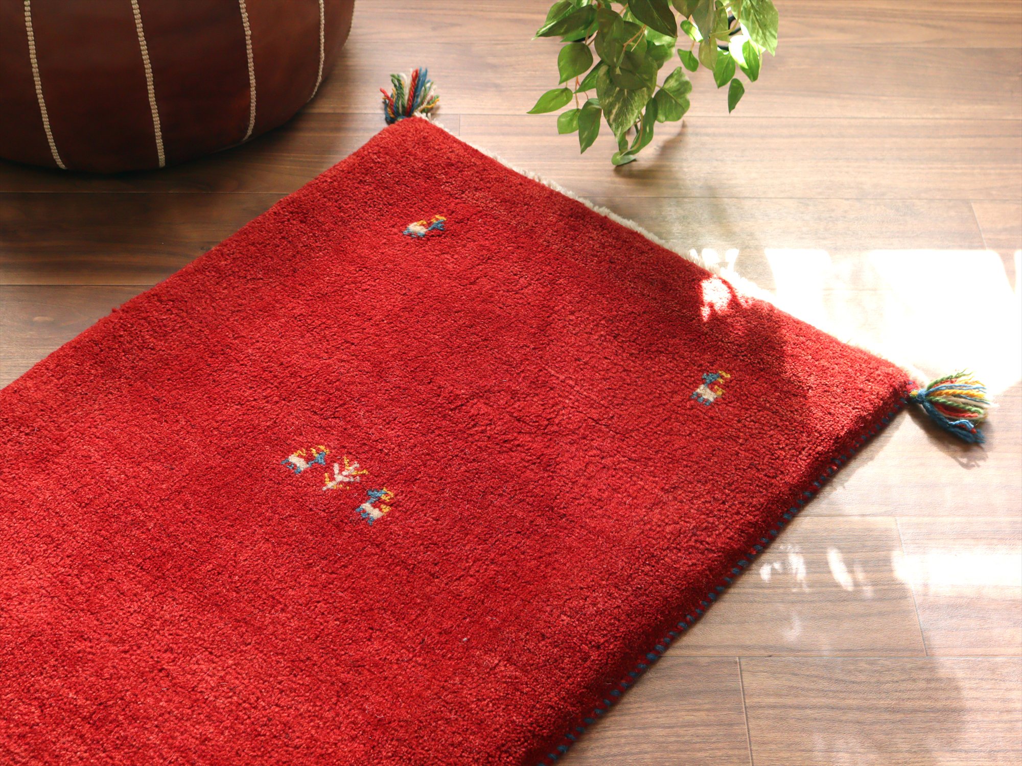 ギャッベ イラン産手織りラグ 90x64cm シンプルデザイン レッド