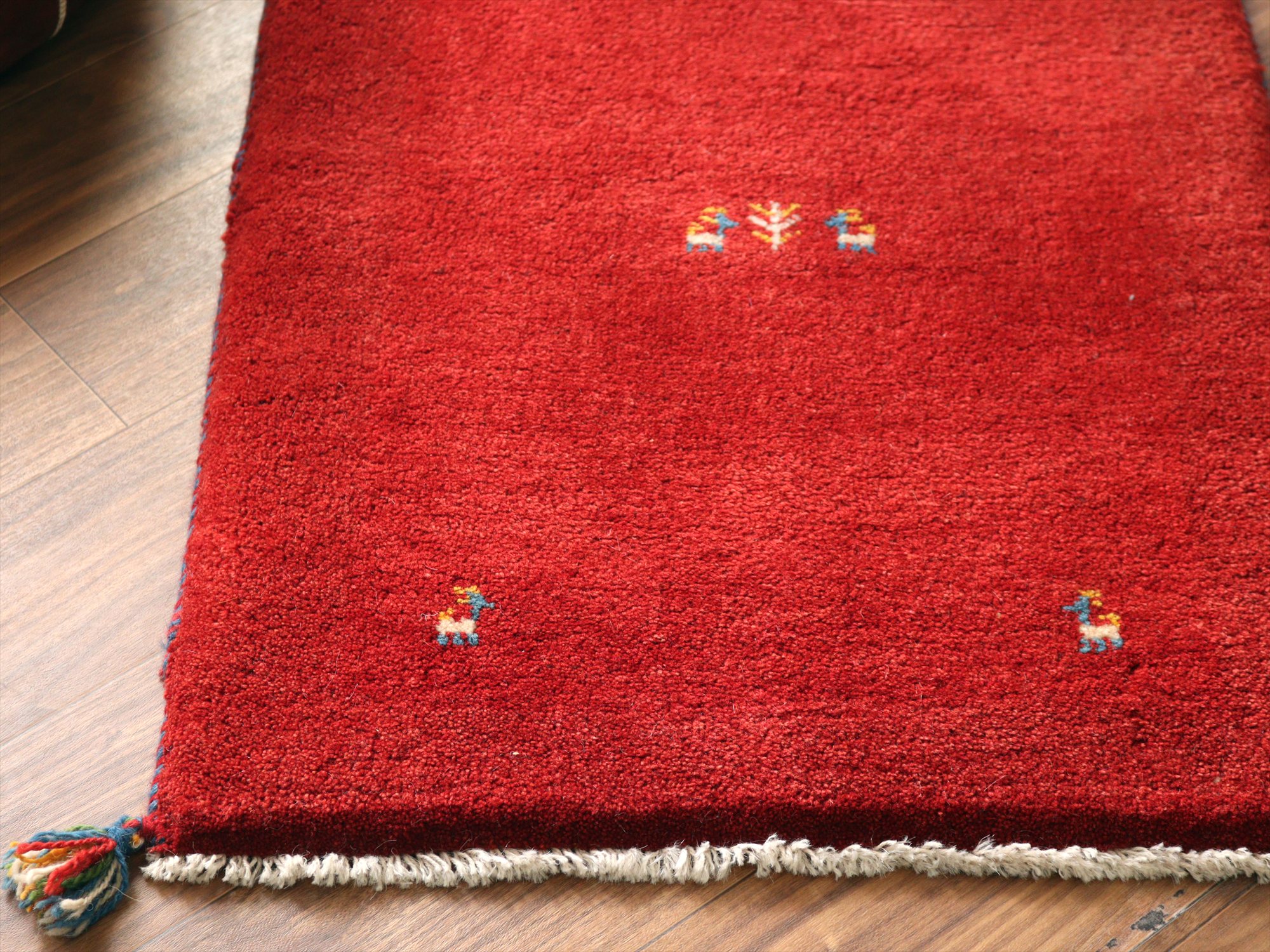 Key:ギャッベ, ギャベ, レッド, 赤, ラグ, 絨毯, イラン, シラーズ, ペルシャ, バザールギャッベ, ポンポン, 手織り, 一点もの, 玄関マット, ふかふか, Gabbeh, Tribal rug, Shiraz, Fars, Iran, Persia, Wool, 一点もの, 現品販売,ガラタバザール