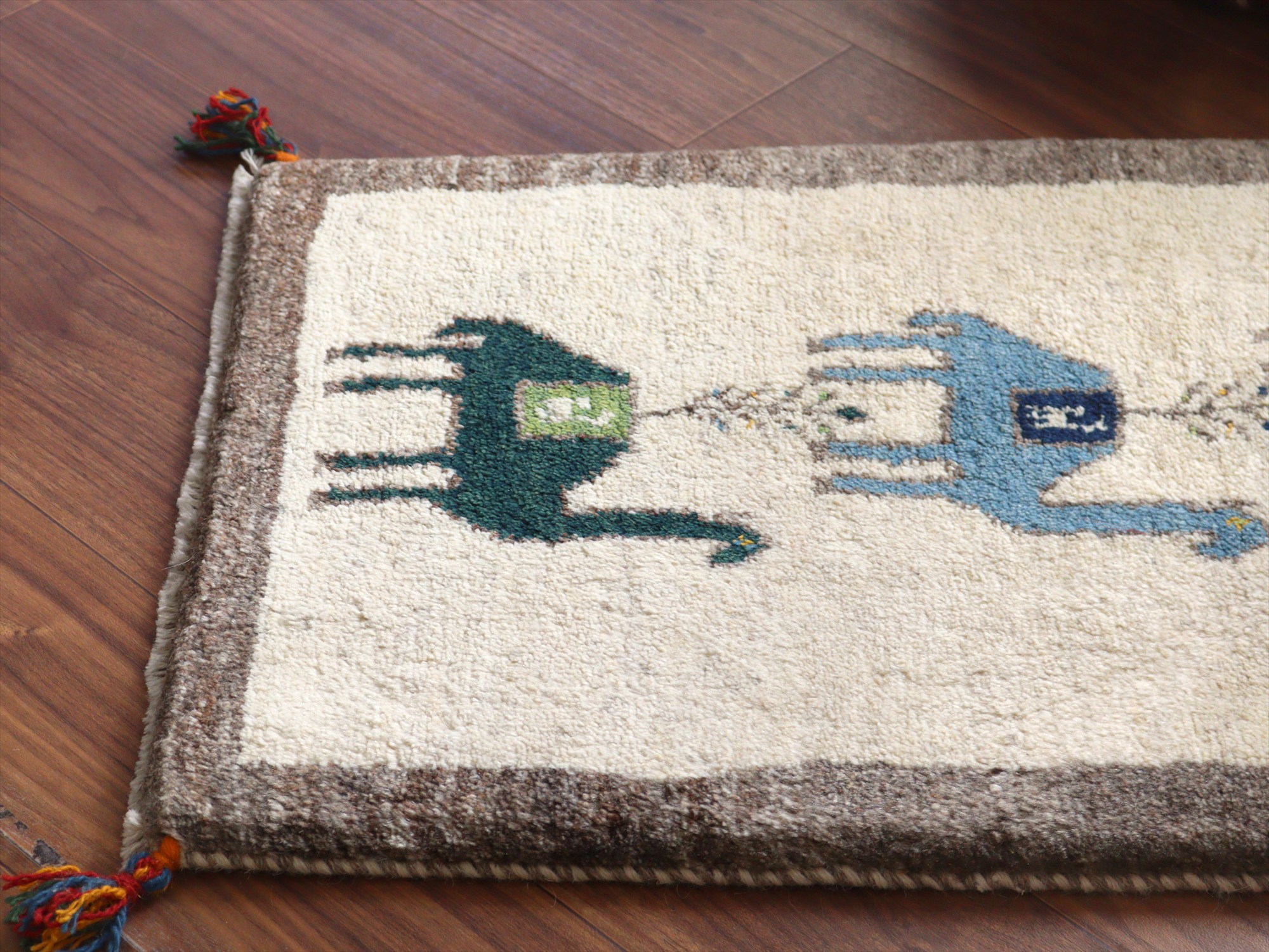 Key:ギャッベ, ギャベ, アイボリー, 白, ラグ, 絨毯, イラン, シラーズ, ペルシャ, バザールギャッベ, ポンポン, 手織り, 一点もの, 玄関マット, ふかふか, Gabbeh, Tribal rug, Shiraz, Fars, Iran, Persia, Wool, 一点もの, 現品販売,ガラタバザール