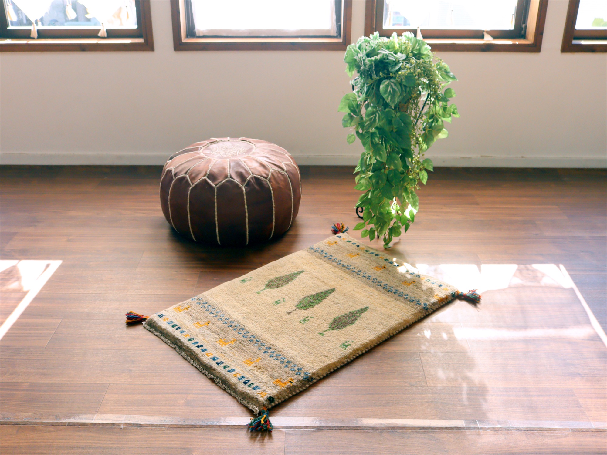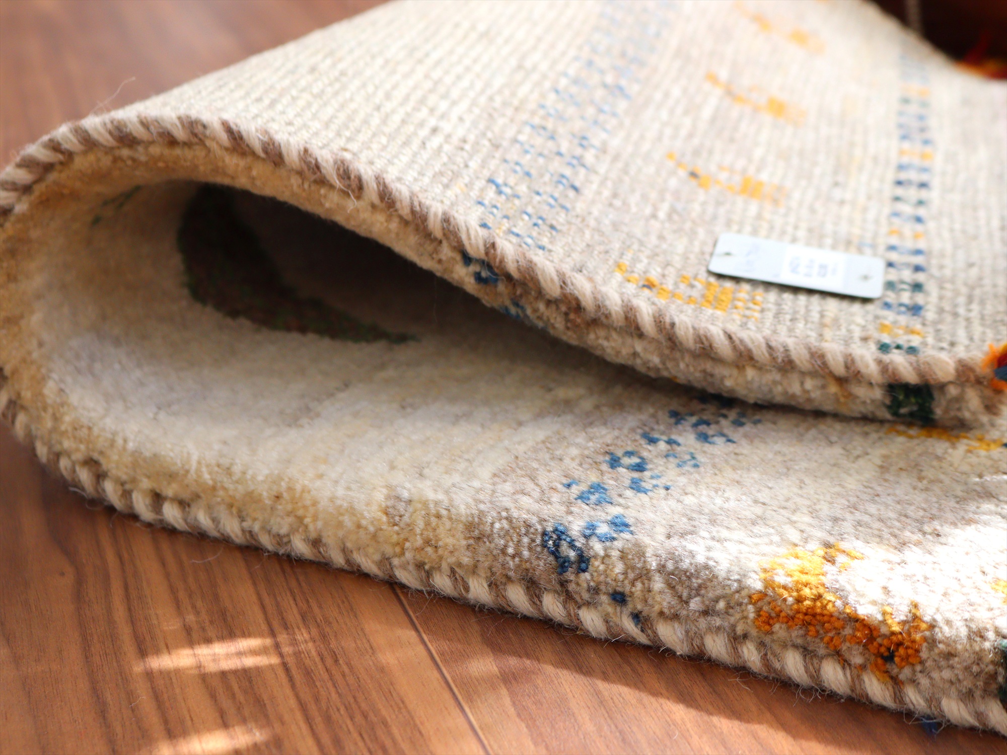 ギャッベ イラン産手織りラグ 88x58cm 動物と植物 アイボリー