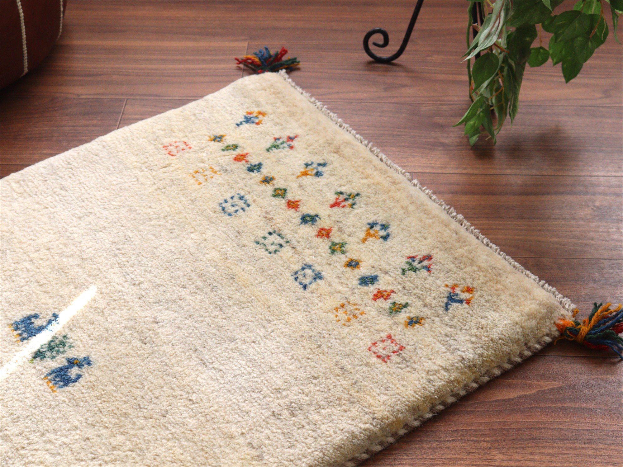Key:ギャッベ, ギャベ, アイボリー, 白, ラグ, 絨毯, イラン, シラーズ, ペルシャ, バザールギャッベ, ポンポン, 手織り, 一点もの, 玄関マット, ふかふか, Gabbeh, Tribal rug, Shiraz, Fars, Iran, Persia, Wool, 一点もの, 現品販売,ガラタバザール