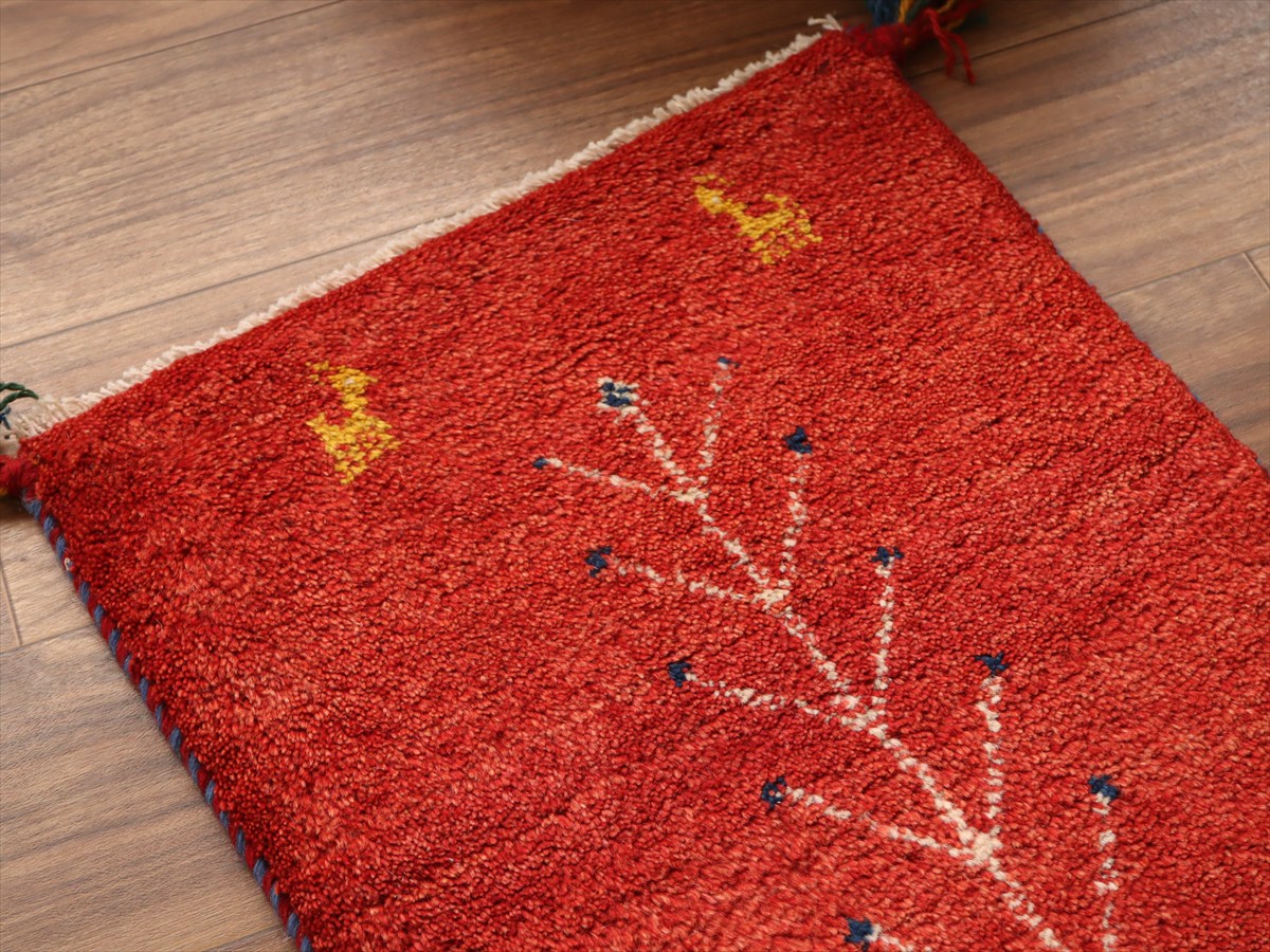 ギャッベ ミニギャベ イラン産 58×43cm レッド 生命の樹と動物