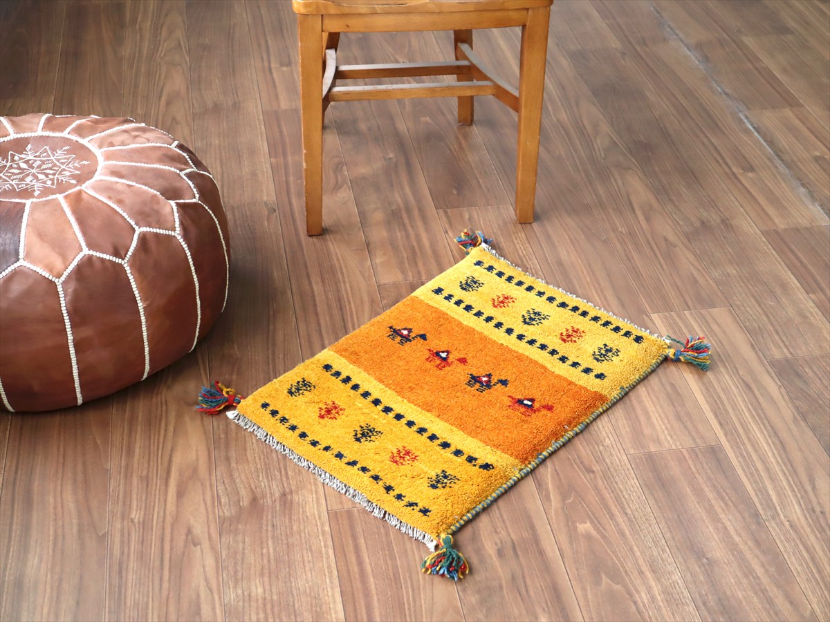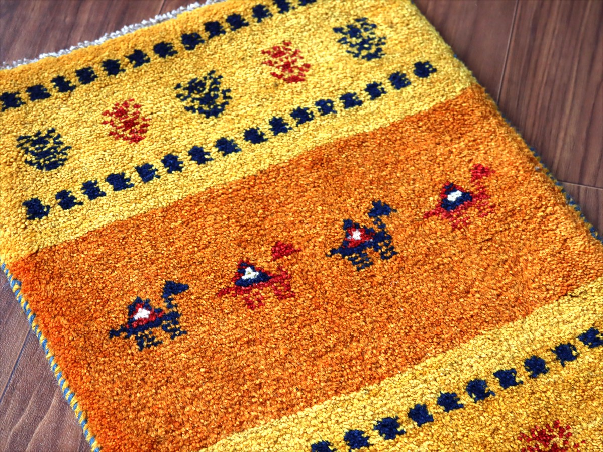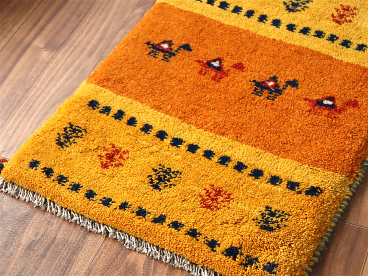 - ギャッベ ミニギャベ イラン産 60×42cm イエローオレンジ ラクダと生命の樹
