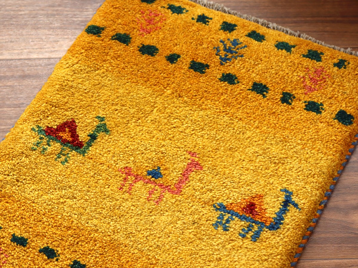 - ギャッベ ミニギャベ イラン産 54×40cm イエローオレンジ ラクダと生命の樹