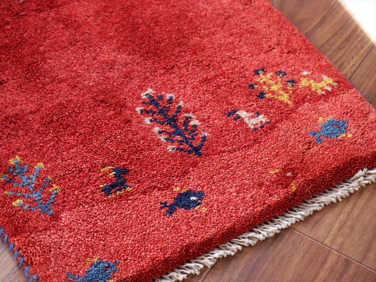 ギャッベ ミニギャベ イラン産 56×42cm レッド 生命の樹と動物と魚