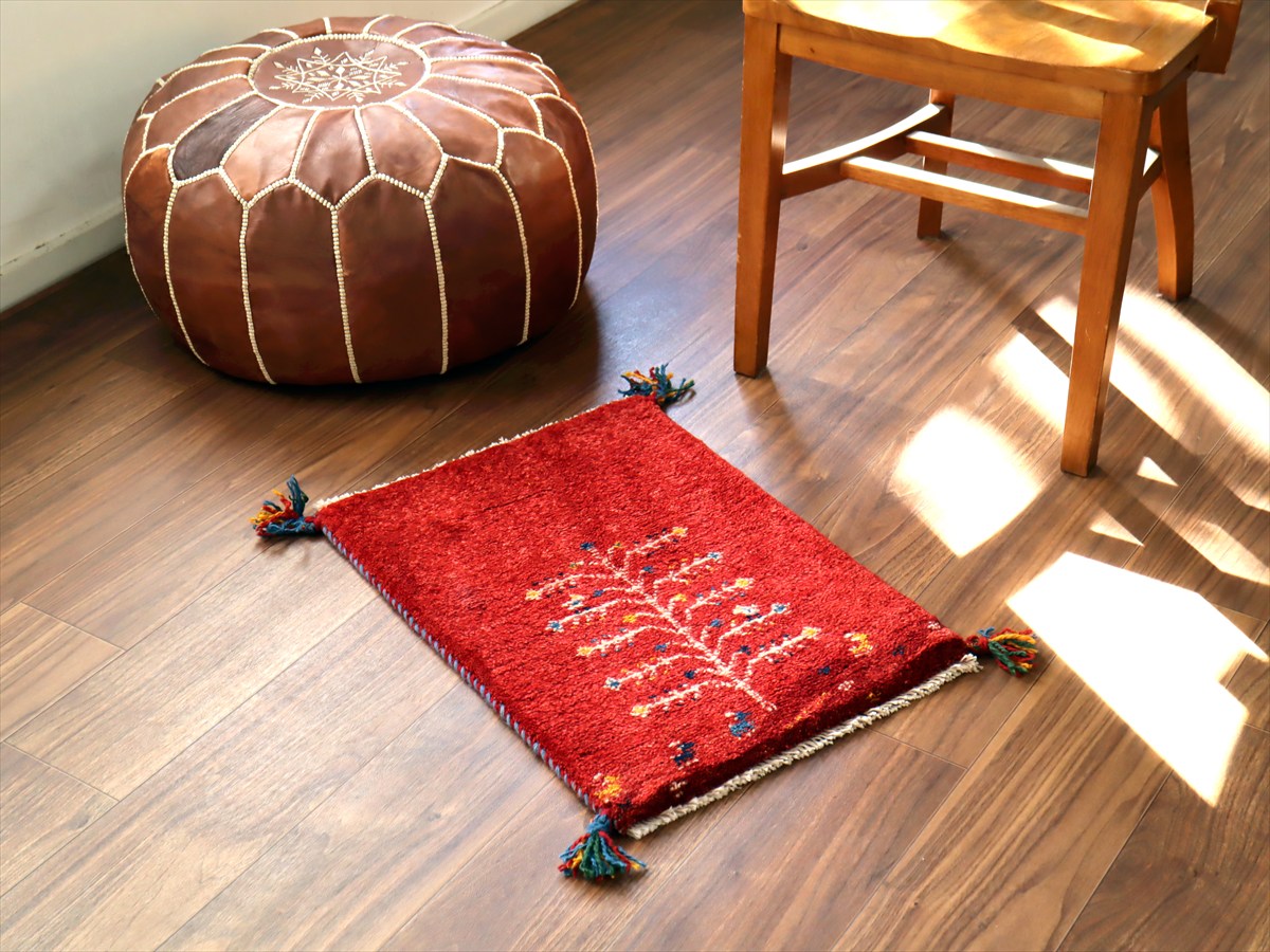 ギャッベ ミニギャベ イラン産 57×41cm レッド 生命の樹と動物