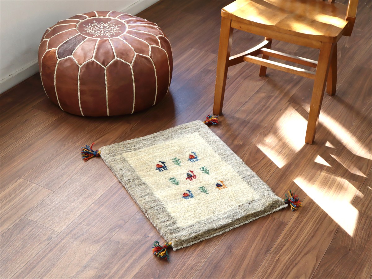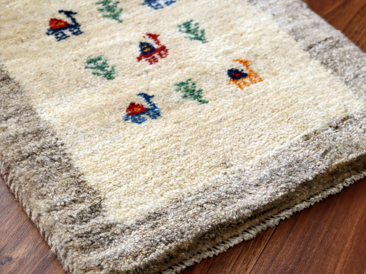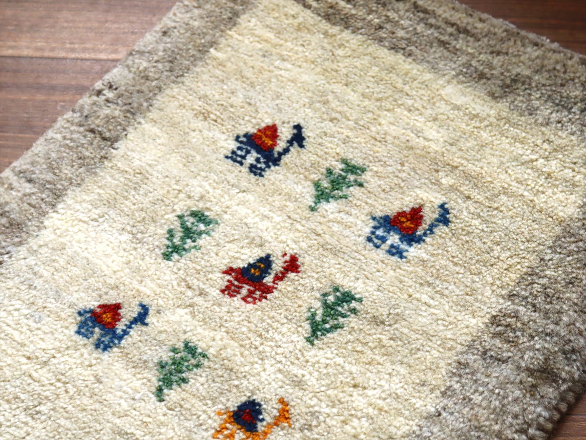ギャッベ ミニギャベ イラン産 59×45cm ナチュラルアイボリー ラクダと生命の樹
