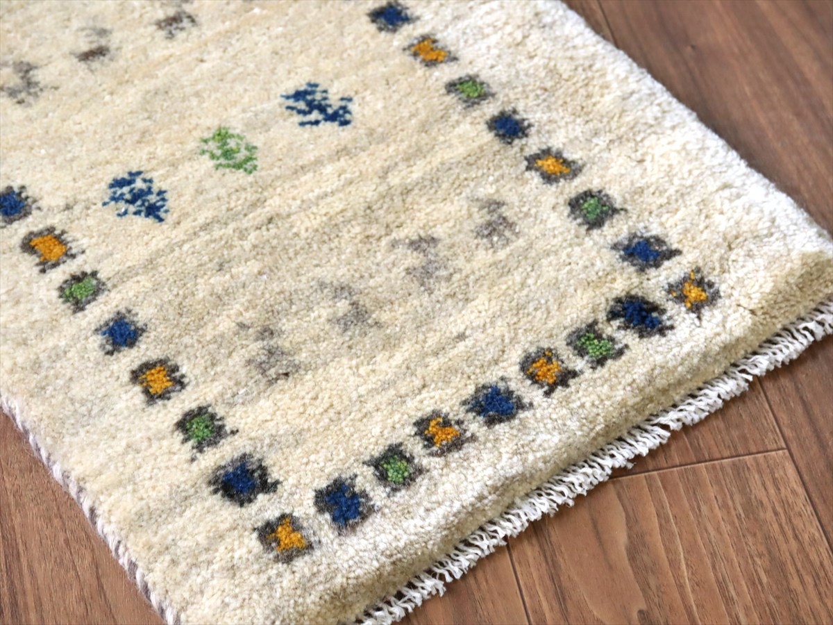 Key:ラグ ギャッベ ギャベ ウール製,イラン 手織り, じゅうたん 絨毯, トライバルラグ 部族絨毯 遊牧民 ノマド カシュカイ族 玄関マット, 一点もの 現品販売 白 ベージュ 羊毛 アイボリー gabbeh, Persian carpet, Tribal rug 東京中野区,ガラタバザール