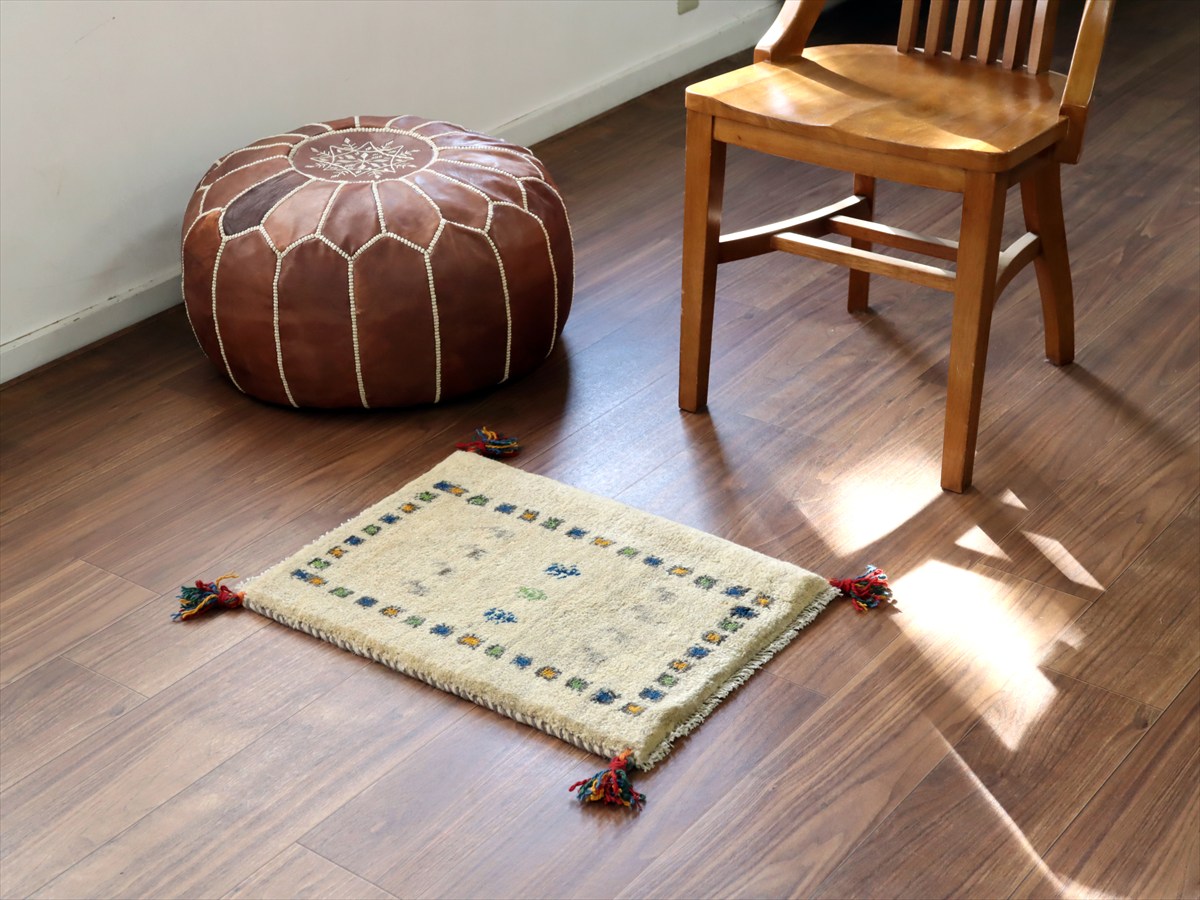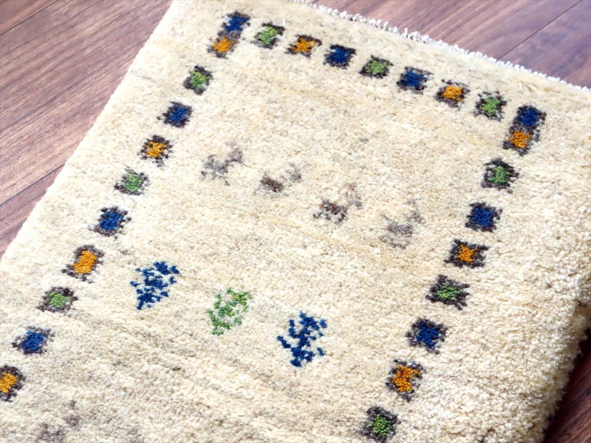 ギャッベ ミニギャベ イラン産 58×43cm ナチュラルアイボリー 生命の樹と動物