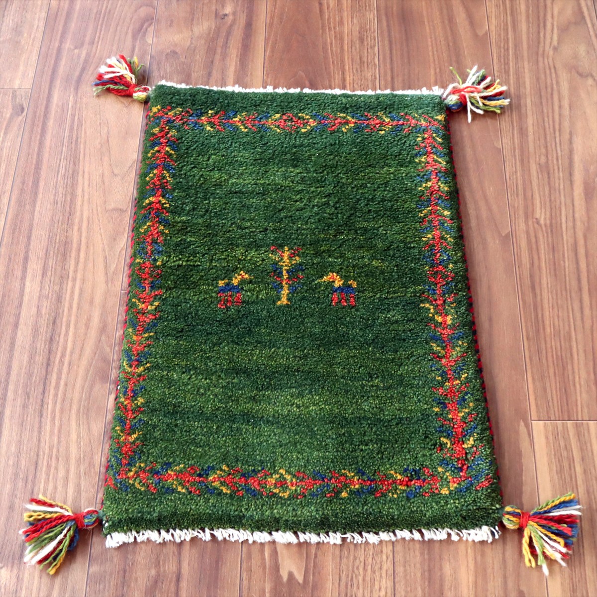 ギャッベ ミニギャベ イラン産 59×40cm グリーン 連なる生命の樹と動物