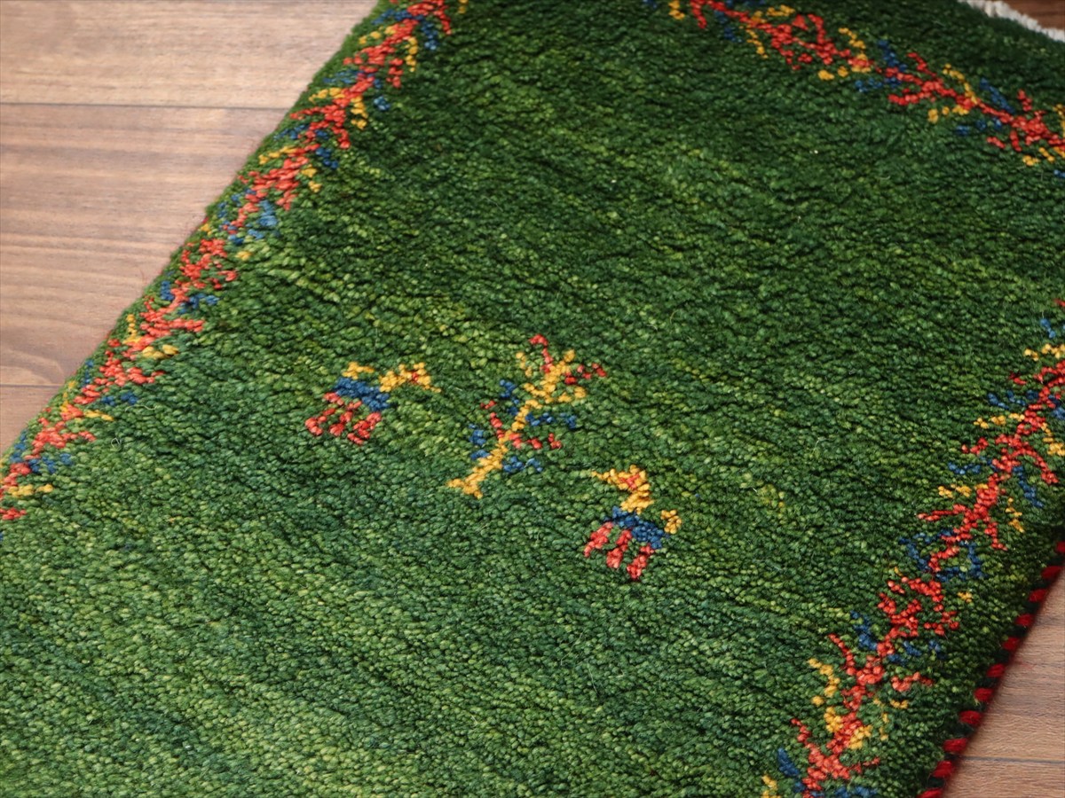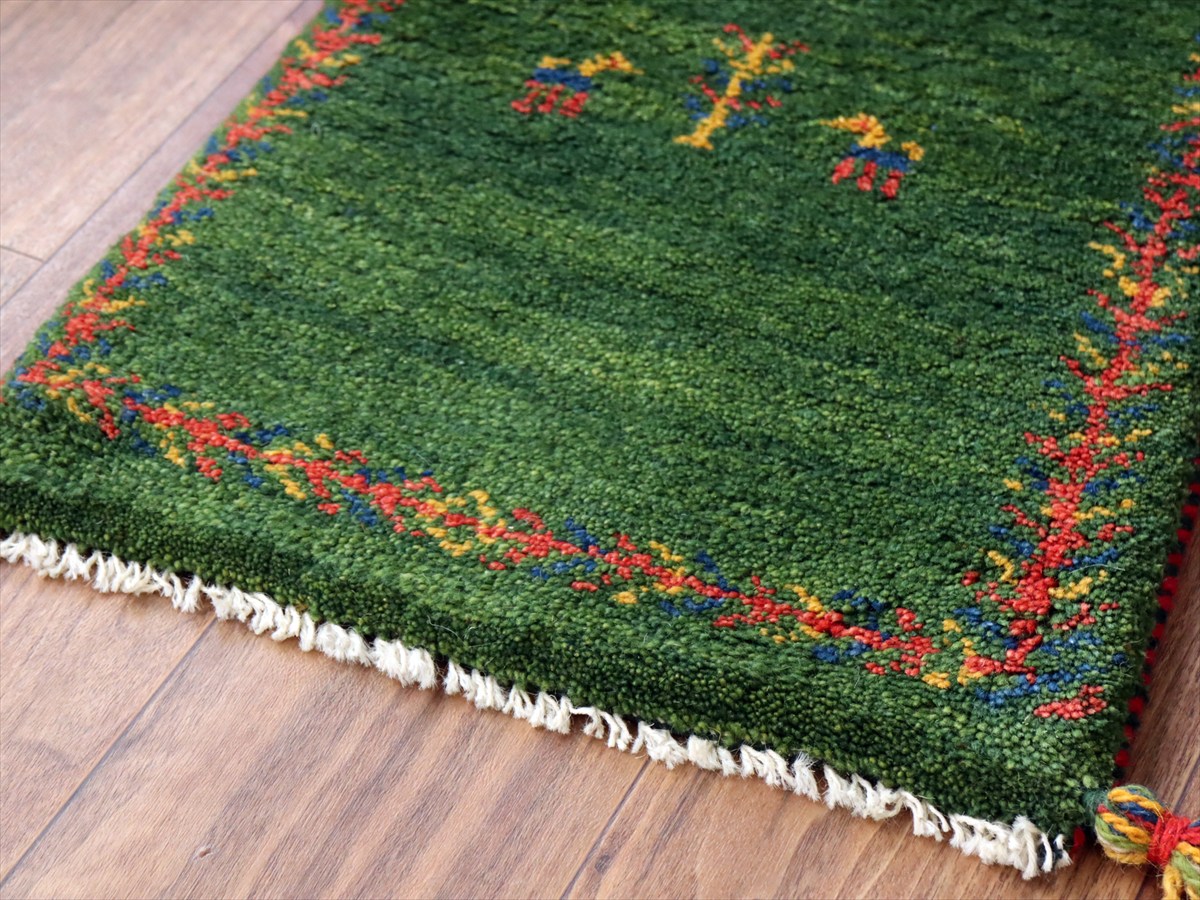 Key:Gabbeh, Tribal rug, Shiraz, Fars, Iran, Persia, Wool, ギャッベ, ギャベ, グリーン 緑 天然染料 草木染 ラグ, 絨毯, イラン, シラーズ, ペルシャ, バザールギャッベ, ポンポン, 手織り, 一点もの, 玄関マット, ふかふか, ガラタバザール