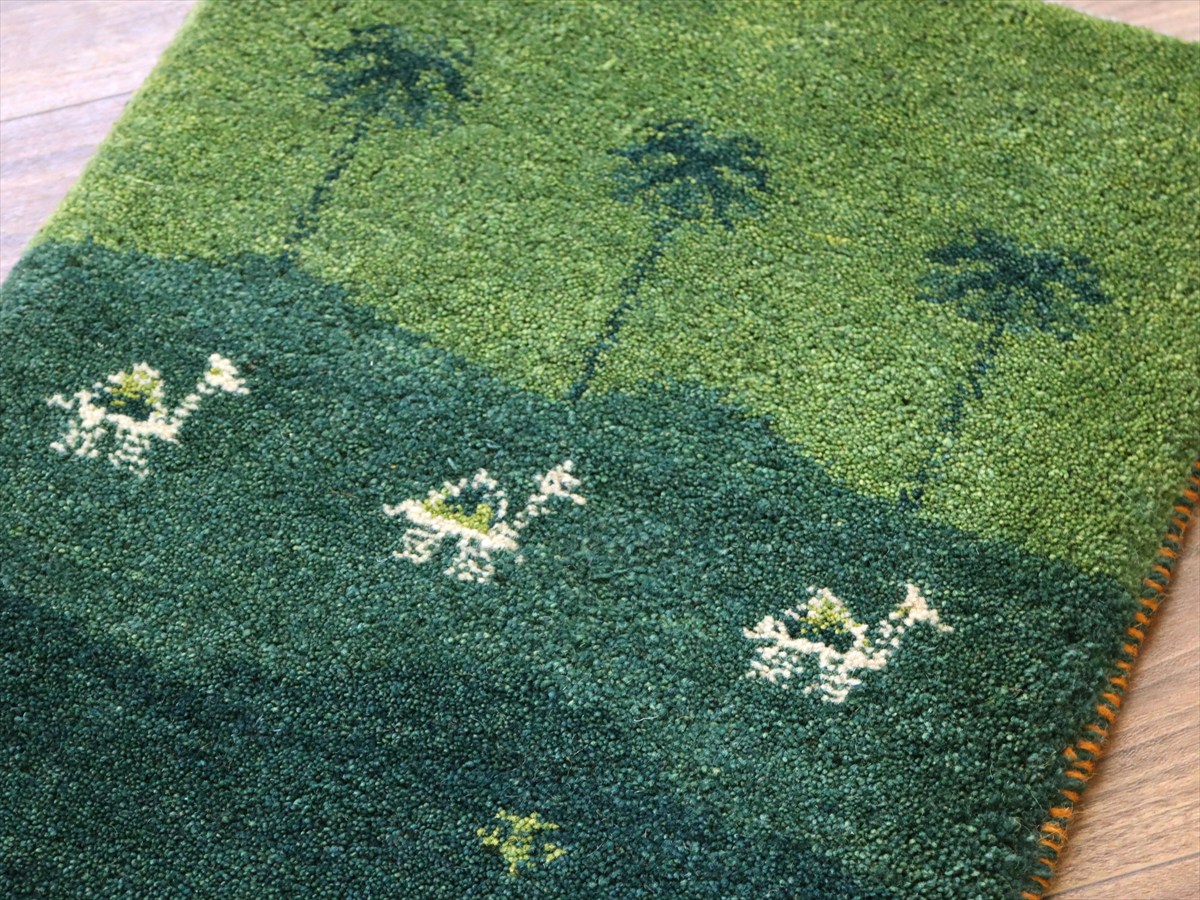 ギャッベ ミニギャベ イラン産 60×45cm グリーン 丘の上のラクダ