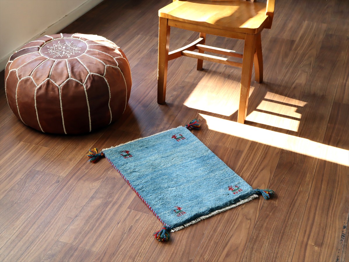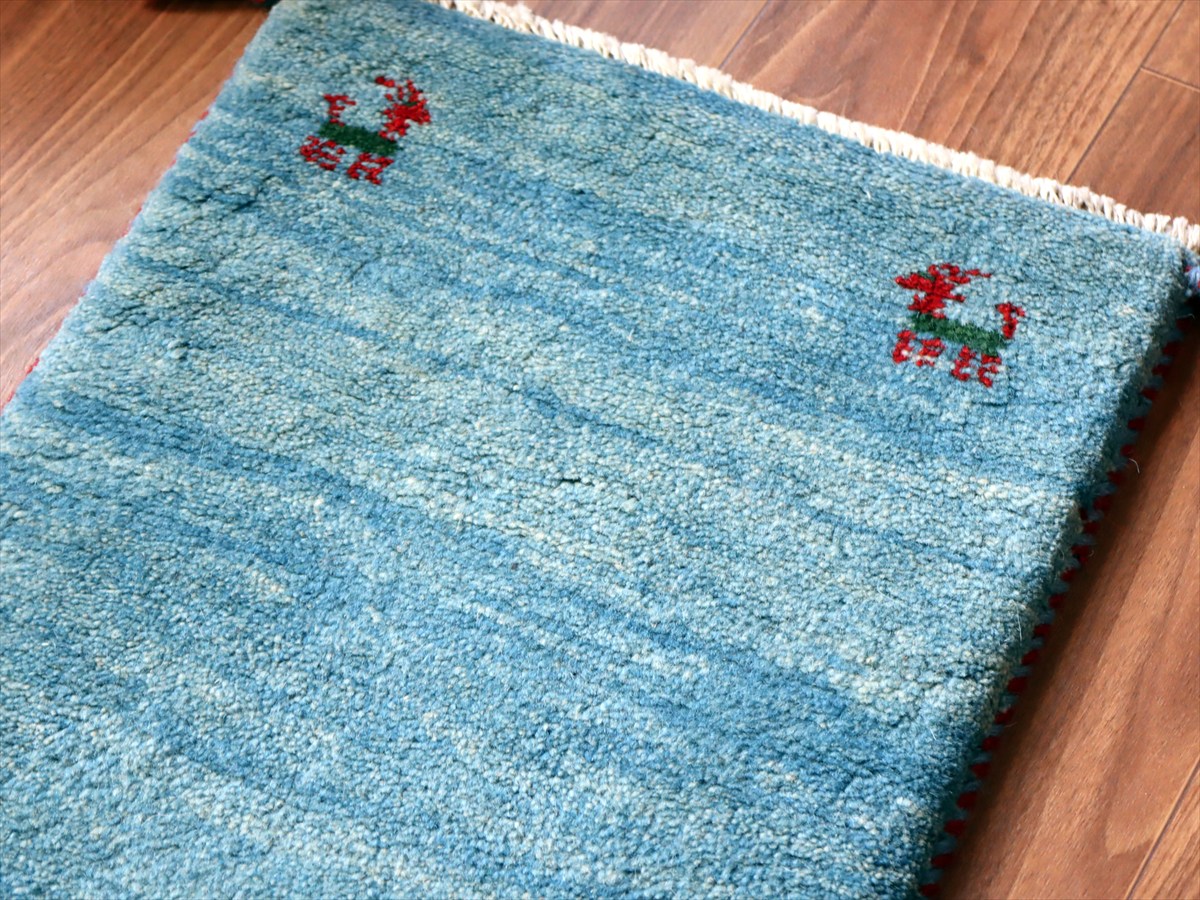 ギャッベ ミニギャベ イラン産 54×40cm ブルー 動物モチーフ
