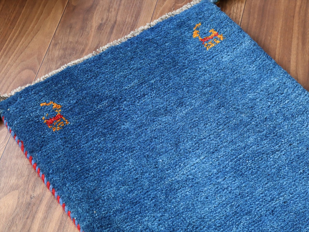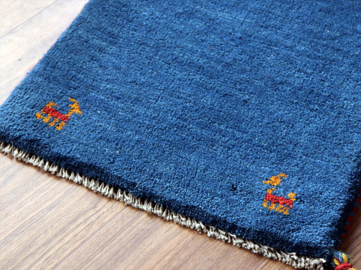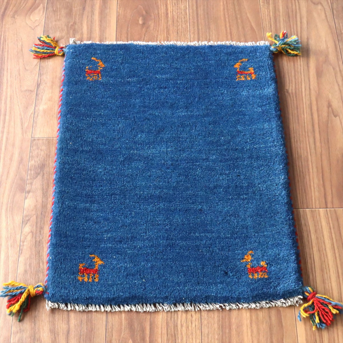 - ギャッベ ミニギャベ イラン産 55×42cm ブルー 動物モチーフ