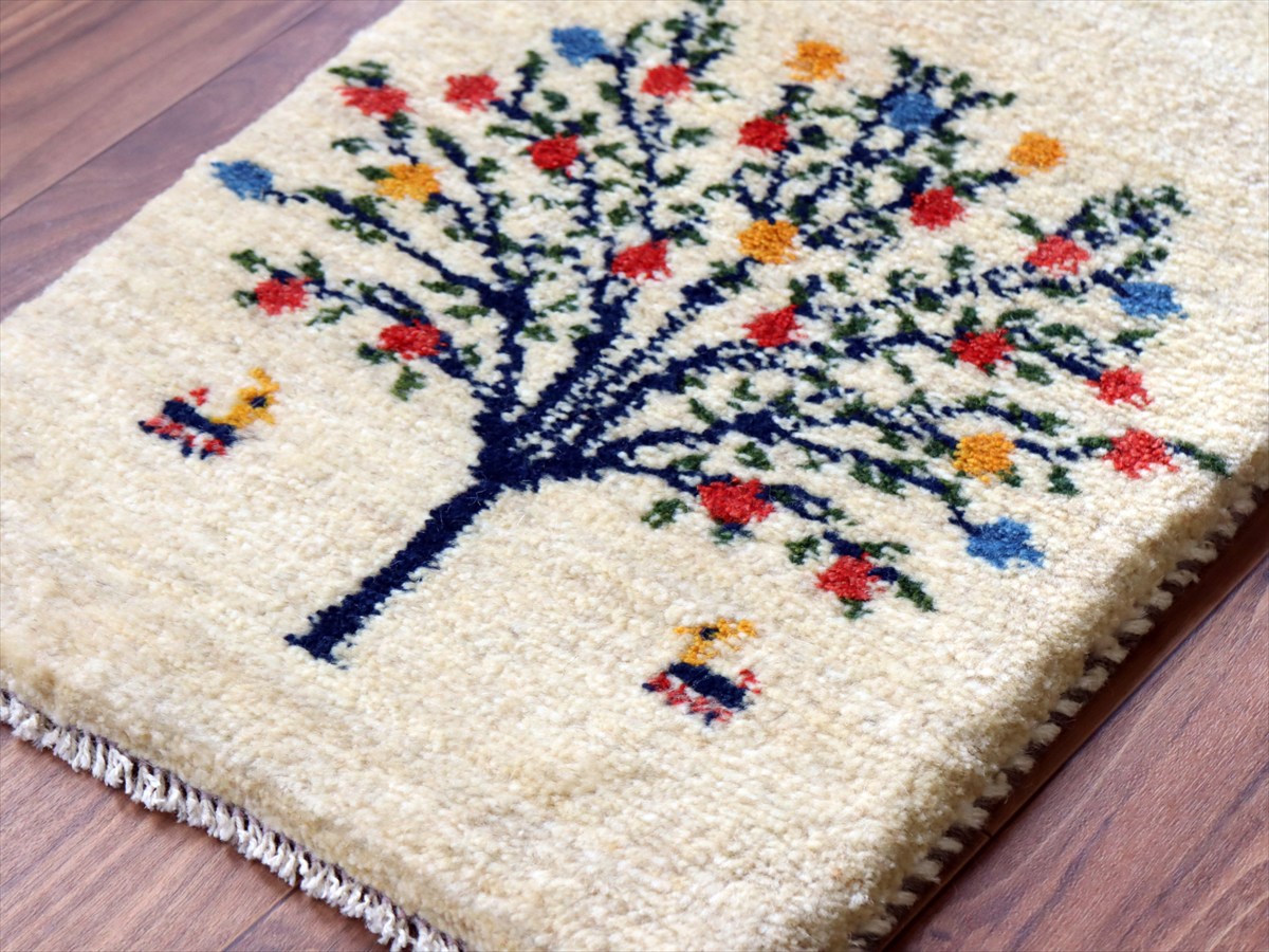 ギャッベ ミニギャベ イラン産 56×41cm ナチュラルアイボリー ザクロの樹と動物