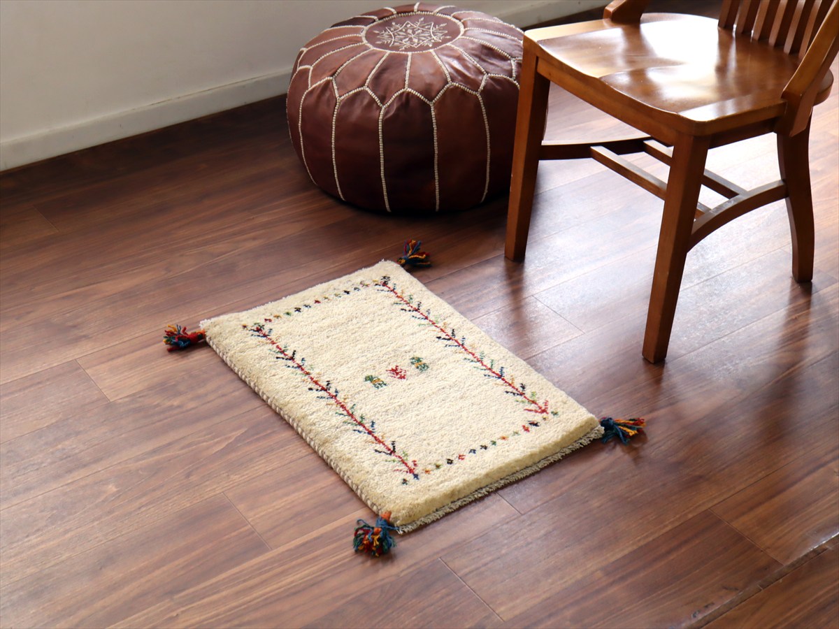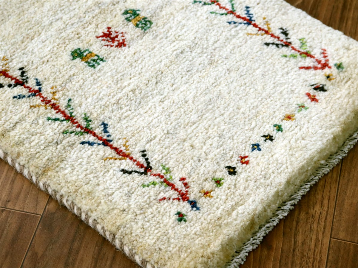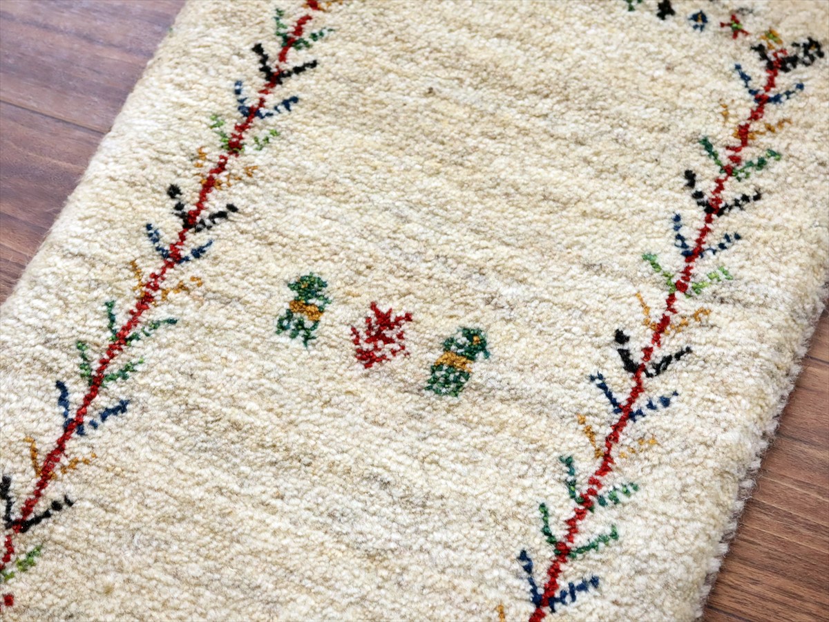 ギャッベ ミニギャベ イラン産 63×42cm ナチュラルアイボリー 連なる生命の樹と動物
