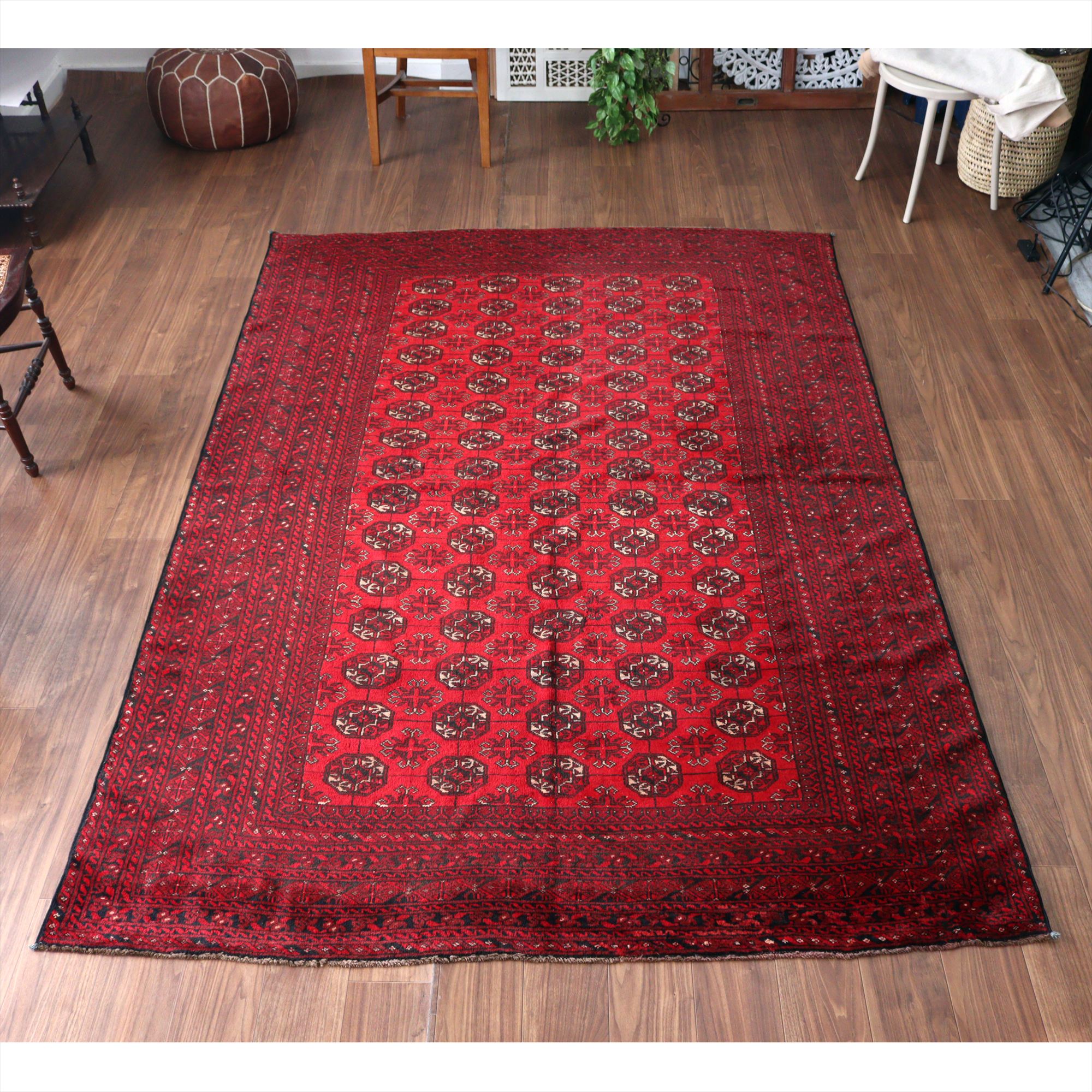 クンドゥズ アフガン絨毯266×185cm 連なる幾何学模様 レッド