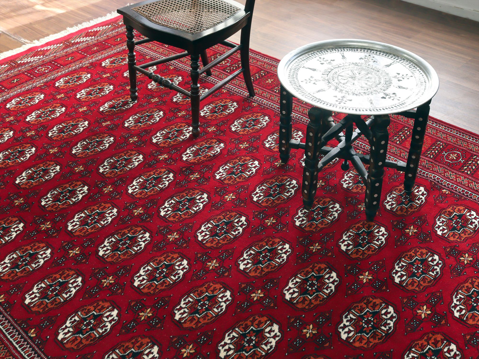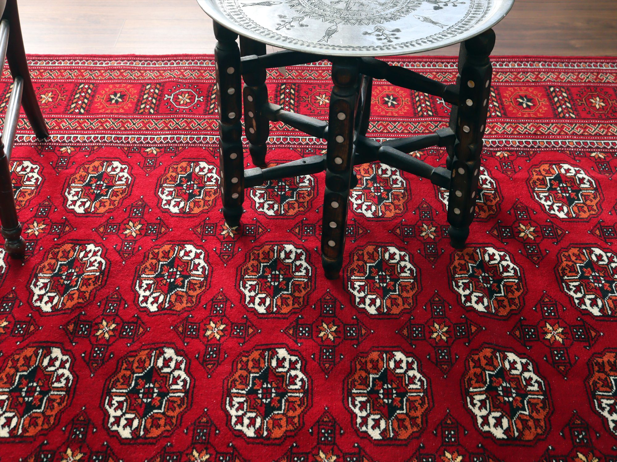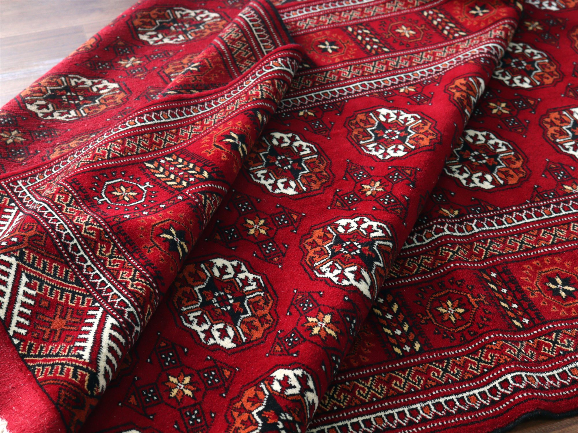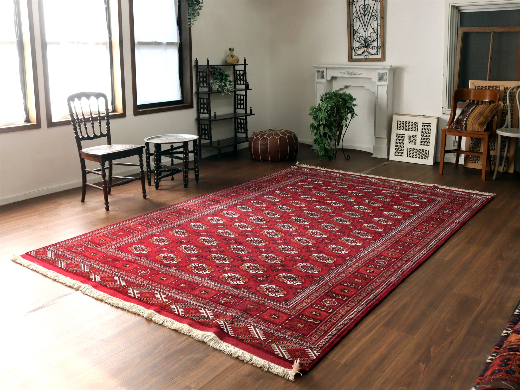 | 中央アジア一帯に住むトルクメン族の絨毯。6平米という大きさは、日本のマーケットではなかなかお目にかかれない貴重なサイズです。幾何学模様が連続するデザインは使いやすく、探していた方はぜひお手に取っていただきたい1枚です。 |