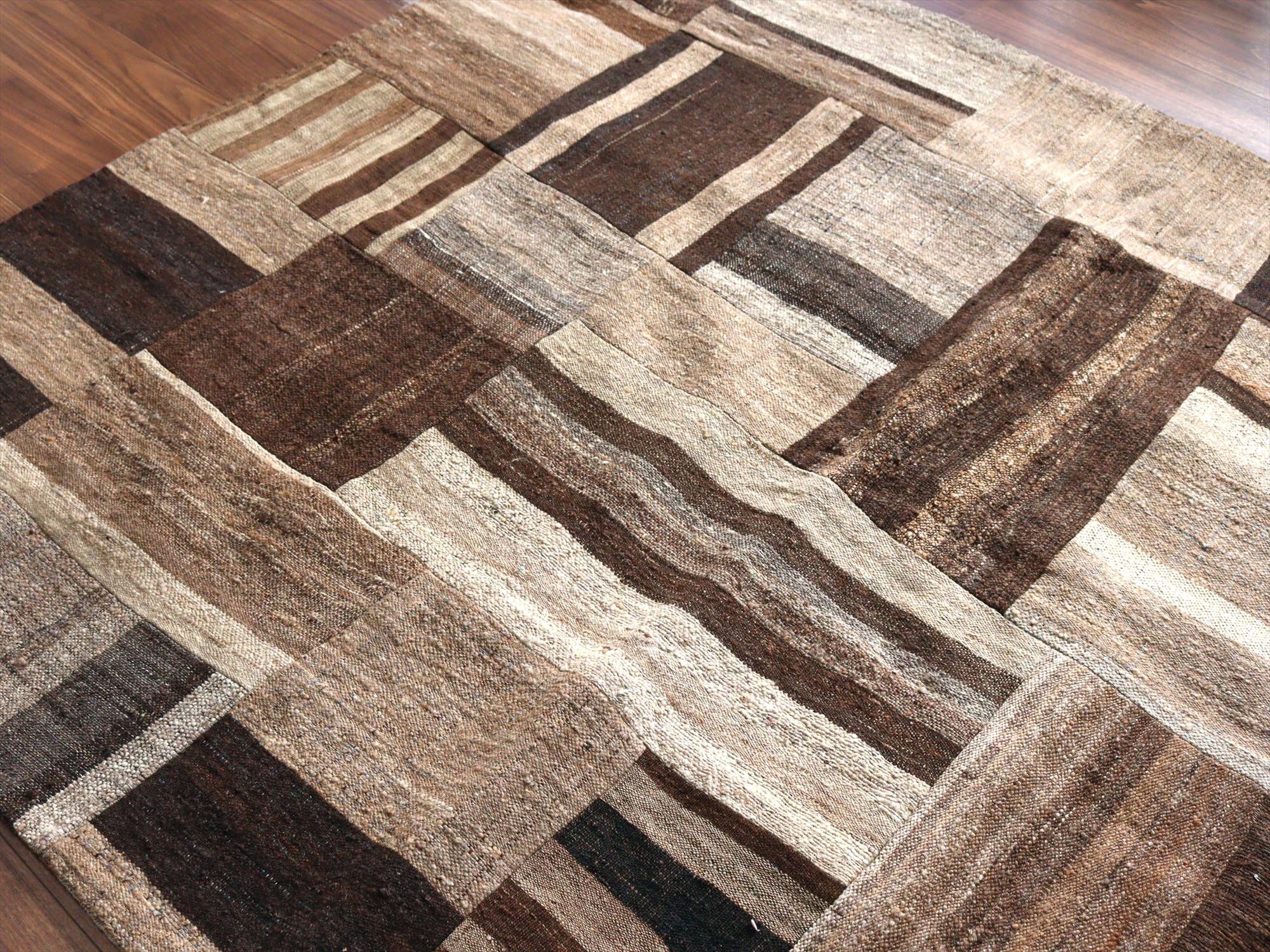 パッチワークキリム 表裏両面のリバーシブルタイプ201×153cm 無染色のナチュラルカラー