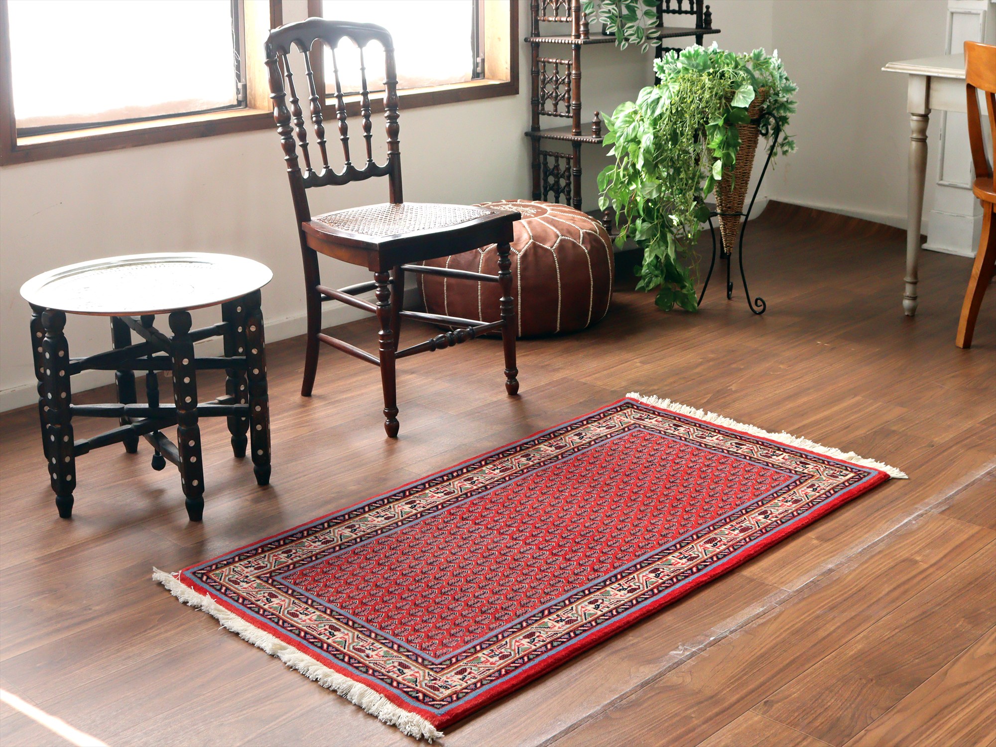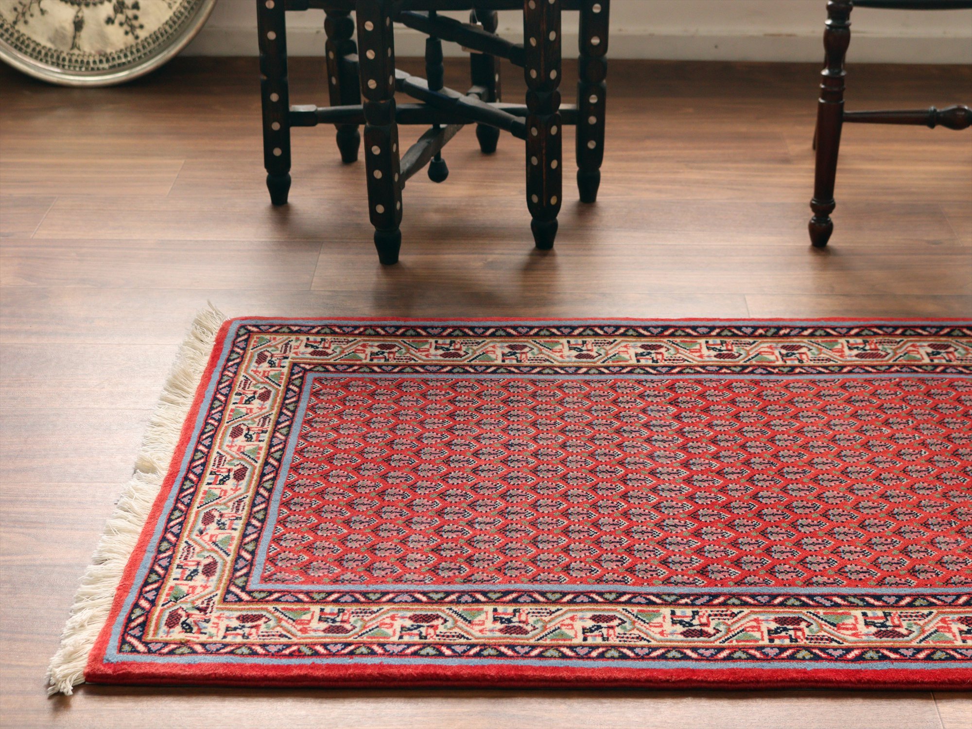 - イランの手織りラグ サルーク131×59cm ボテ ペイズリーのモチーフ レッド