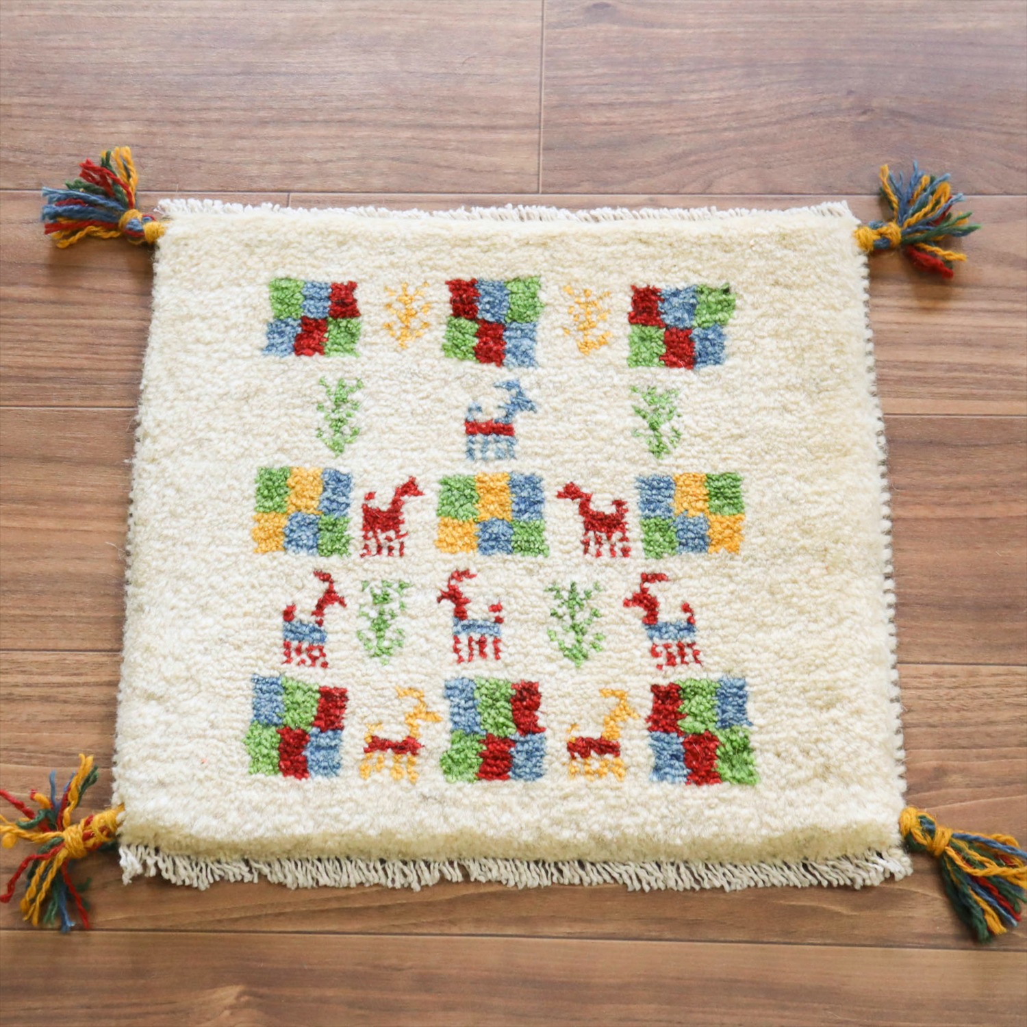 ギャッベ イラン産手織り 座布団サイズ 39x43cm ナチュラルアイボリー