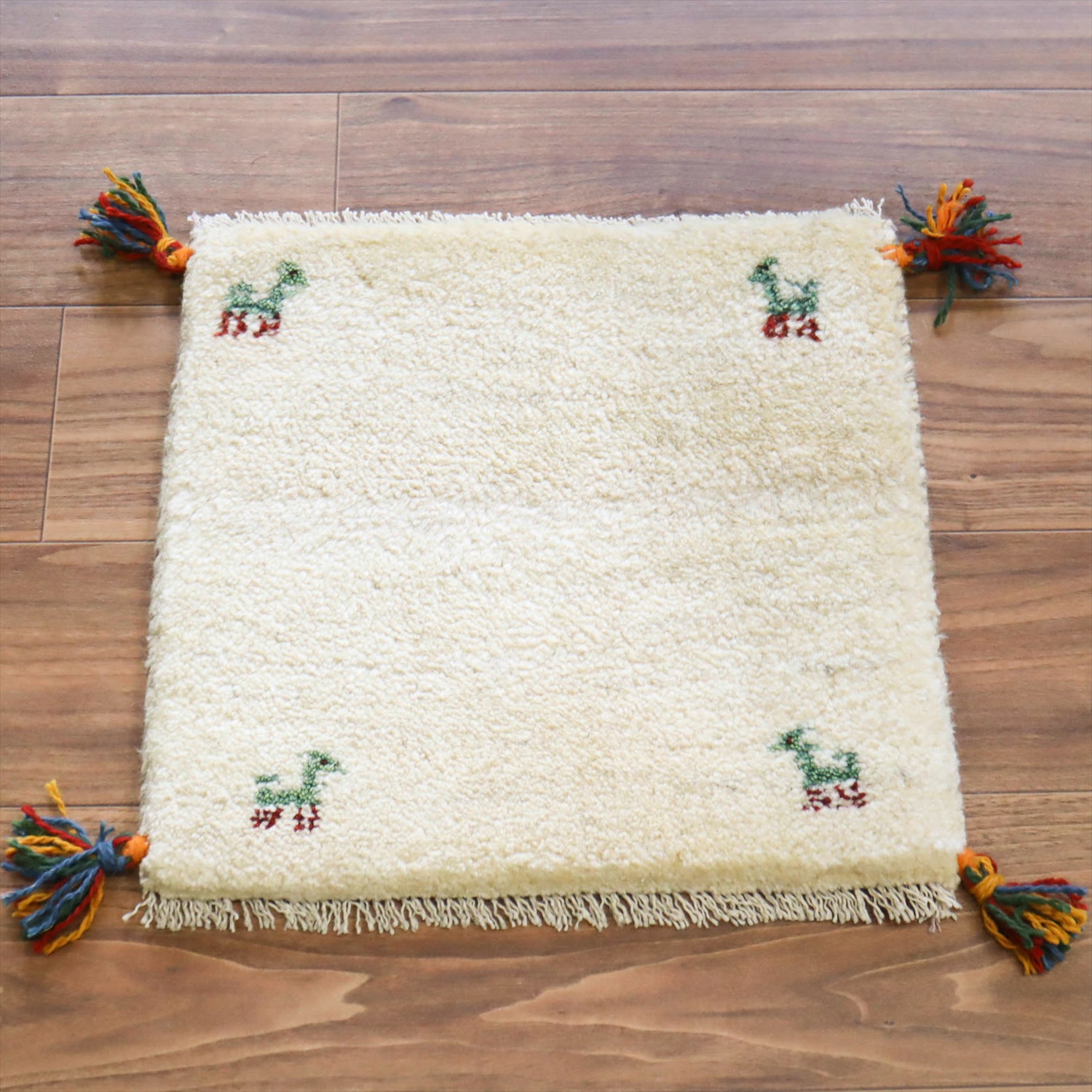 ギャッベ イラン産手織り 座布団サイズ 40x41cm ナチュラルアイボリー 無地 シンプル