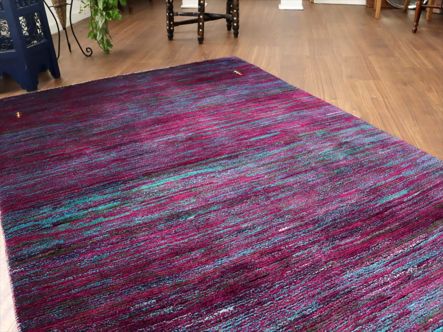 ギャッベ ノマド 176x120cm ブルー&パープル ランダムミックス イラン産手織り Gabbeh Nomad