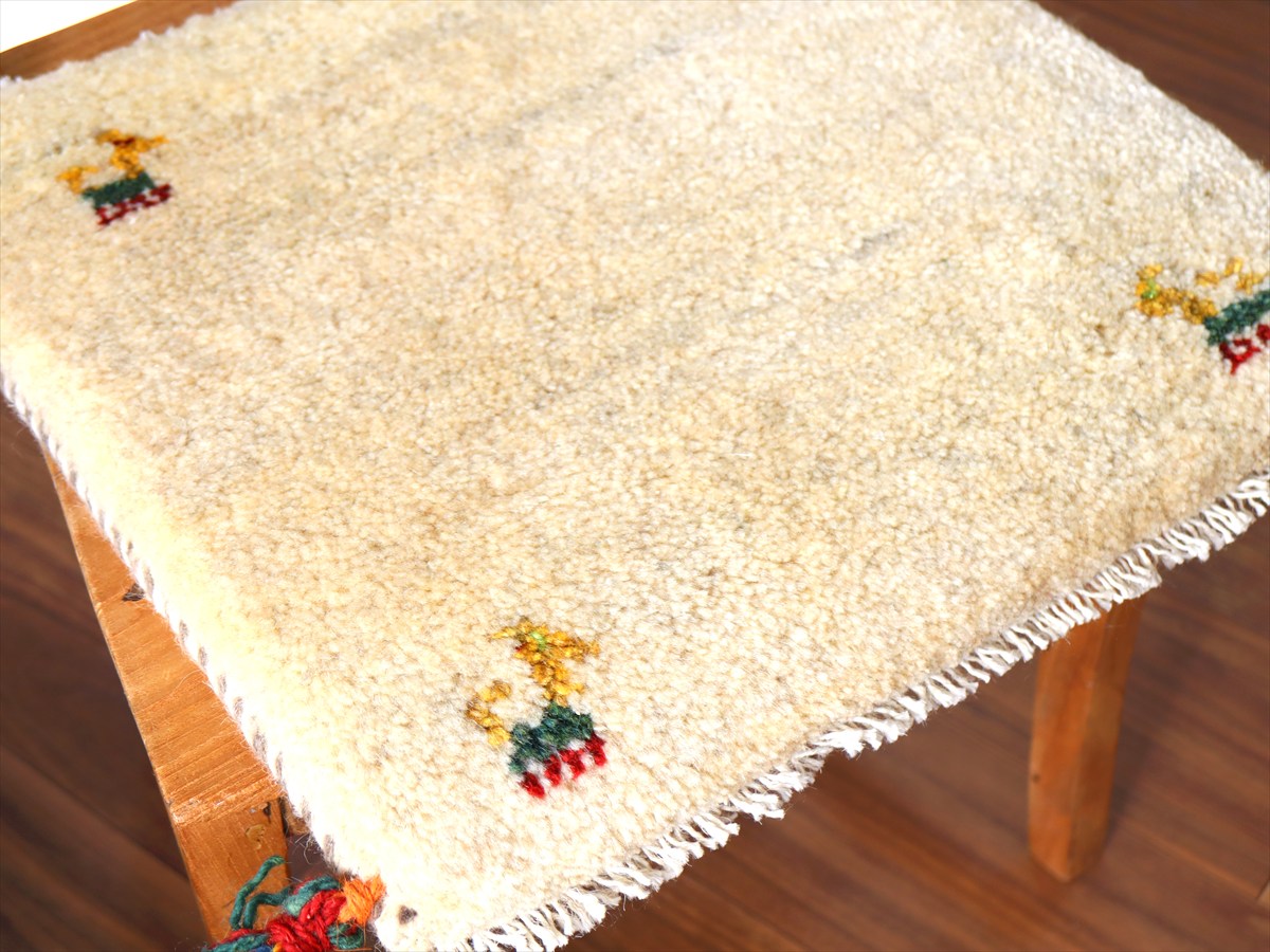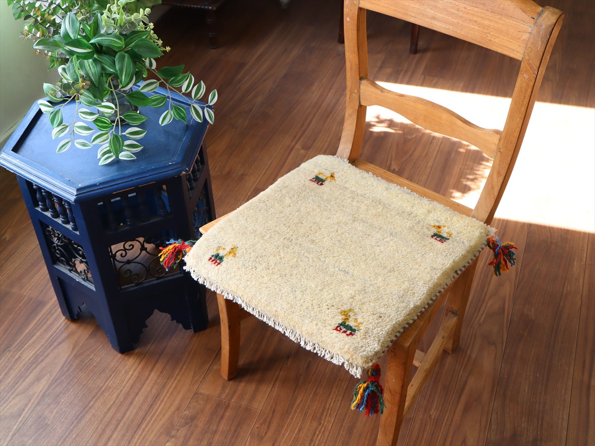 ギャッベ イラン産手織り 座布団サイズ40×40cm ナチュラルアイボリー 動物モチーフ