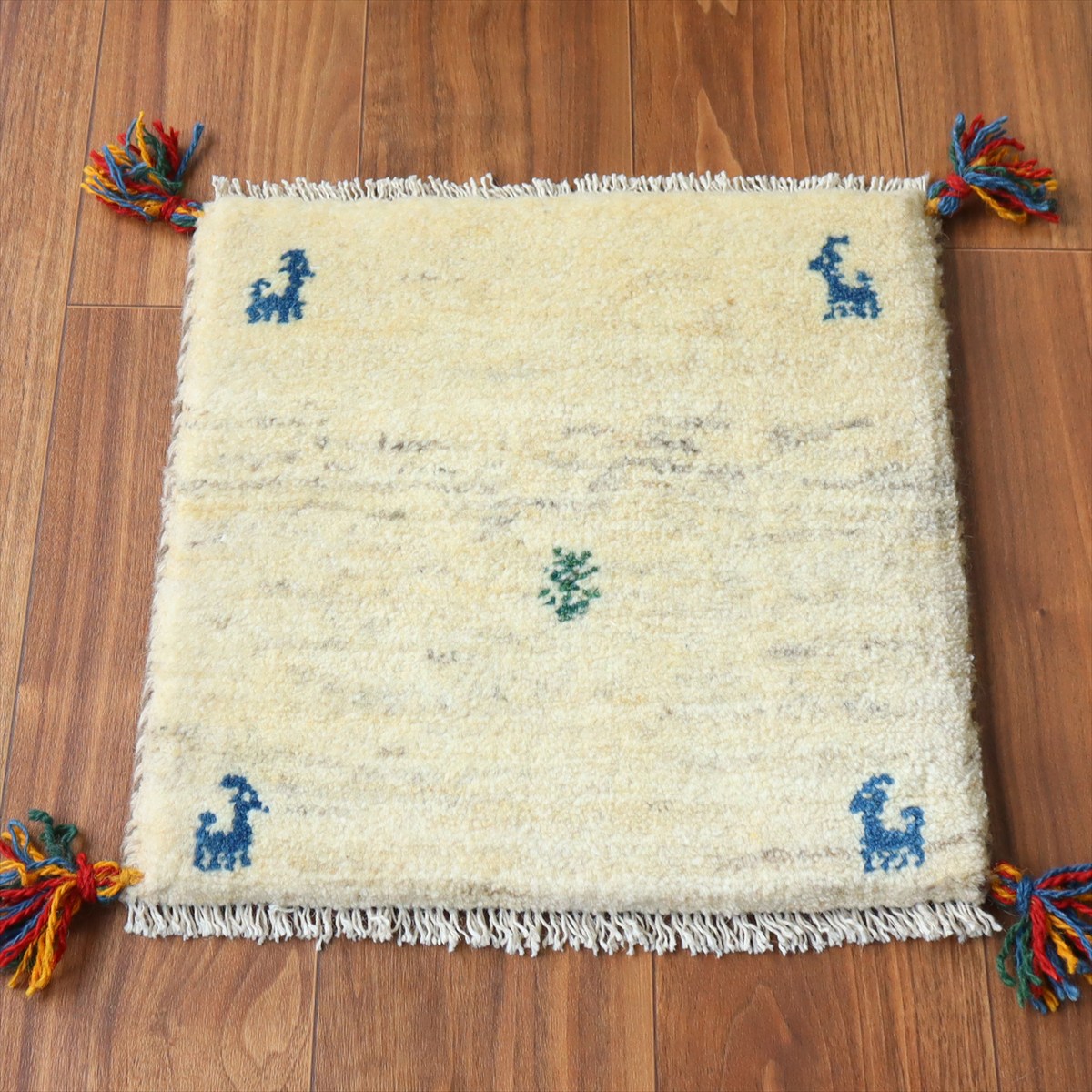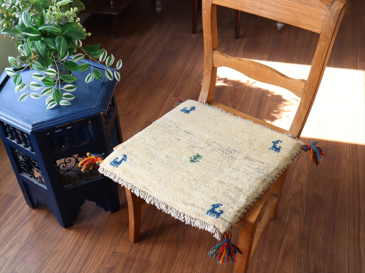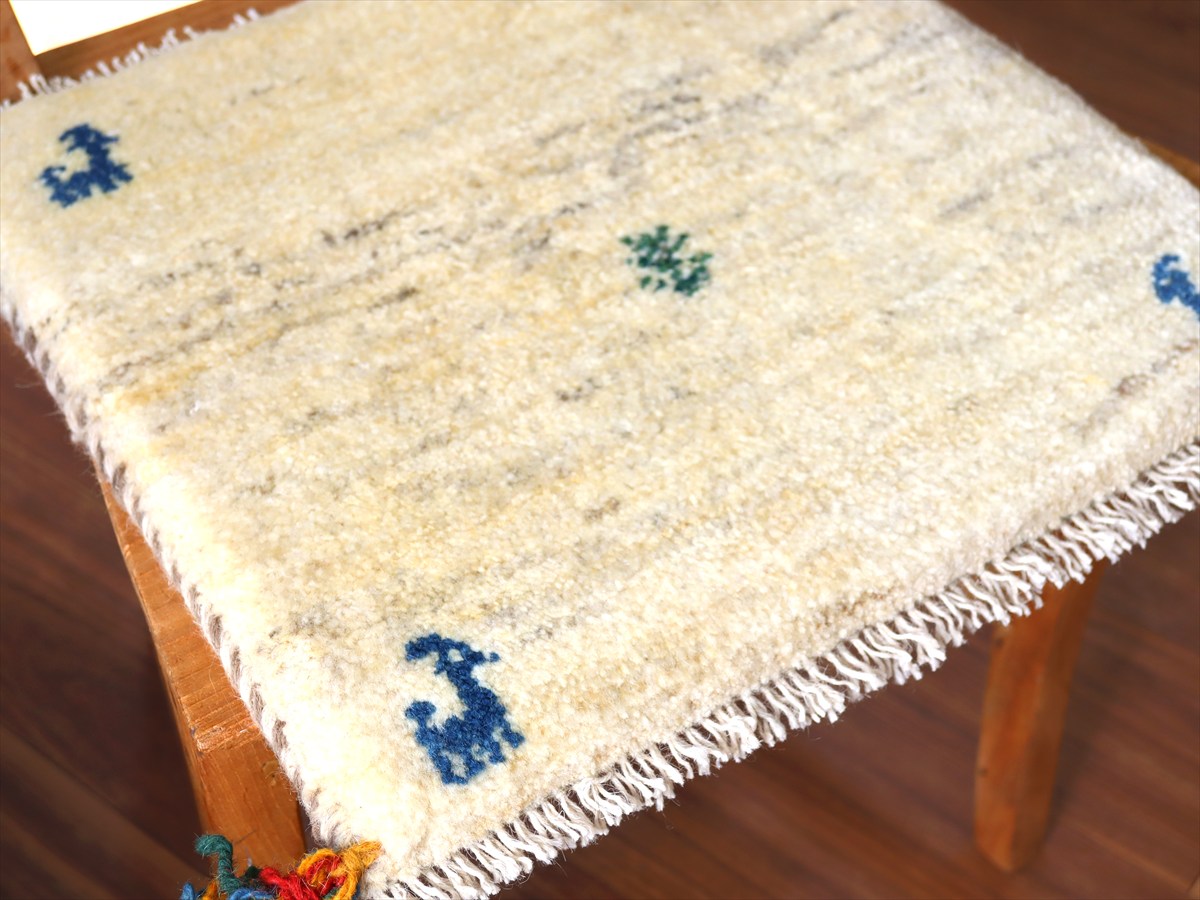 ギャッベ イラン産手織り 座布団サイズ40×40cm ナチュラルアイボリー 動物と生命の樹