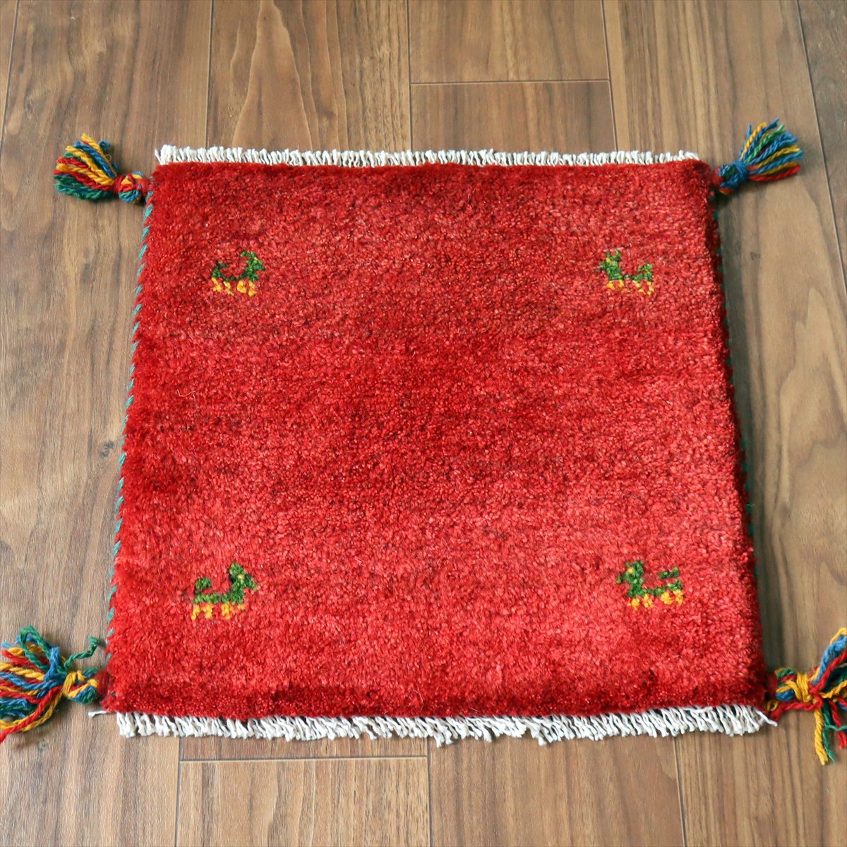 ギャッベ イラン産手織り 座布団サイズ41×42cm レッド 動物モチーフ