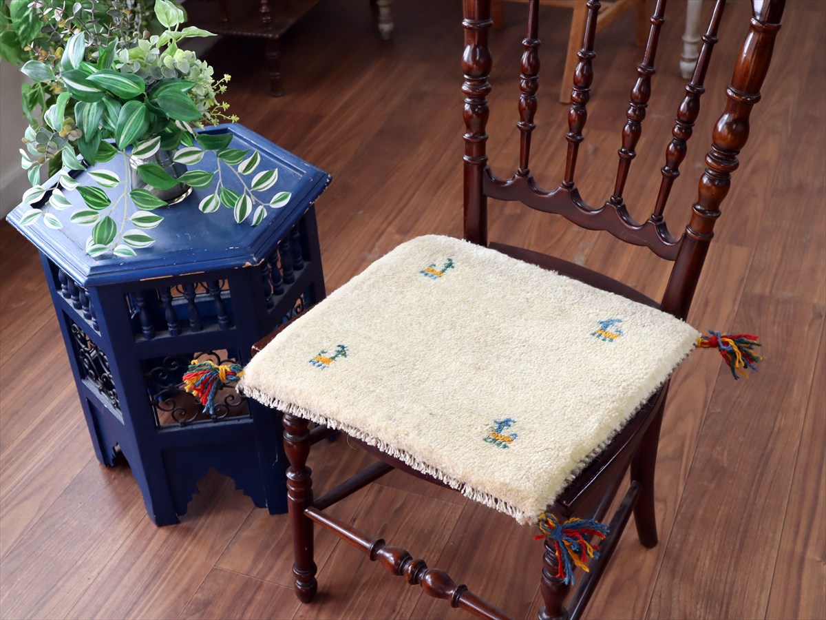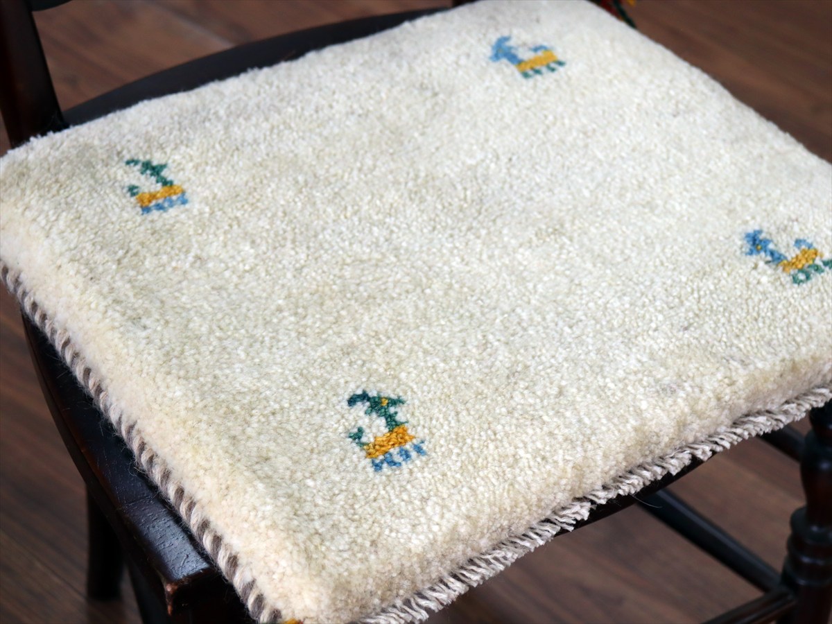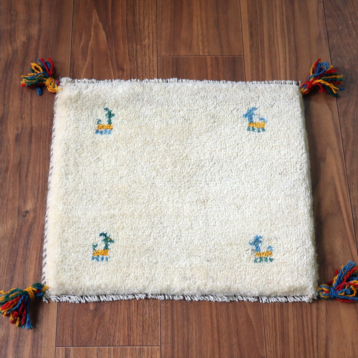 ギャッベ イラン産手織り 座布団サイズ37×42cm ナチュラルアイボリー 動物モチーフ