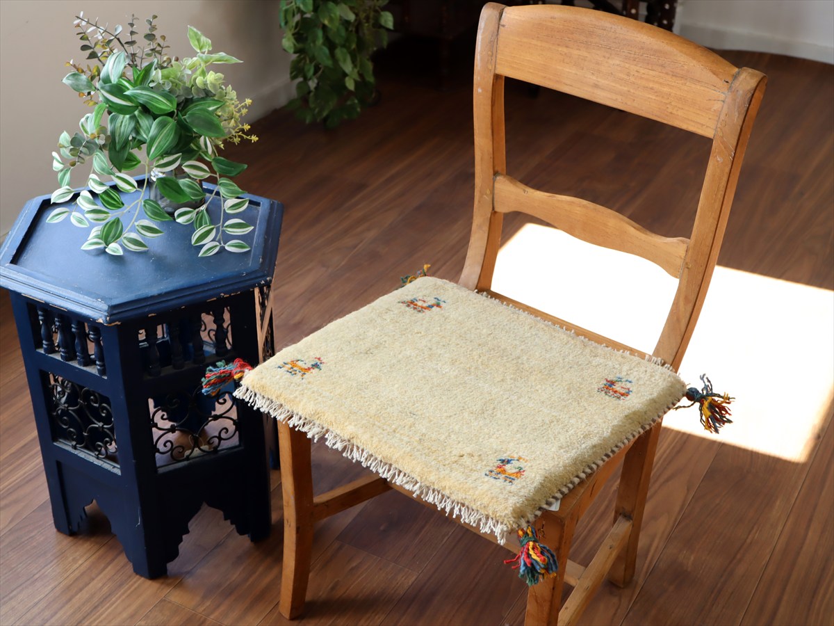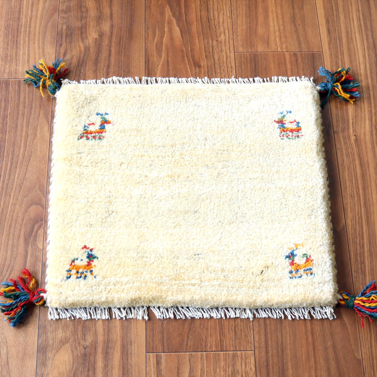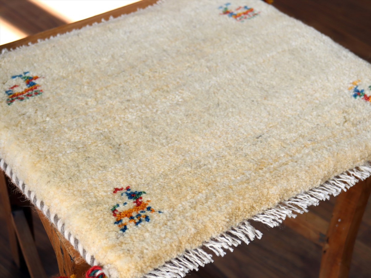 ギャッベ イラン産手織り 座布団サイズ38×43cm ナチュラルアイボリー 動物モチーフ