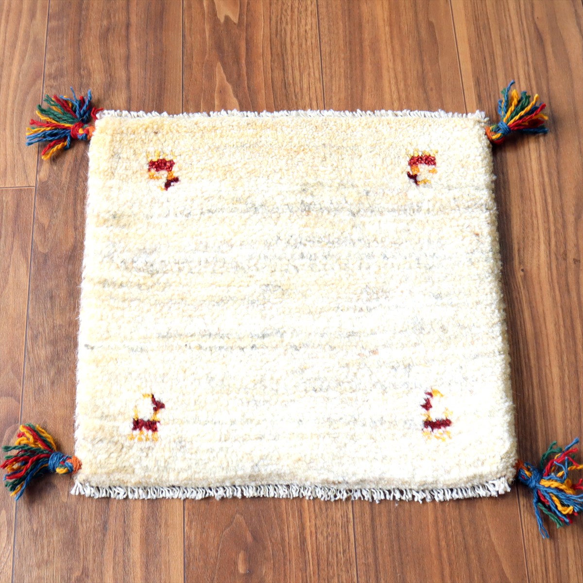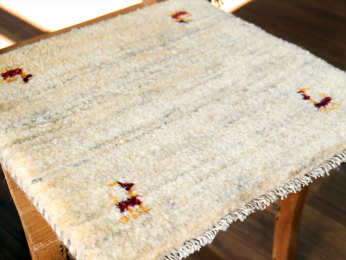 ギャッベ イラン産手織り 座布団サイズ41×42cm ナチュラルアイボリー 動物モチーフ