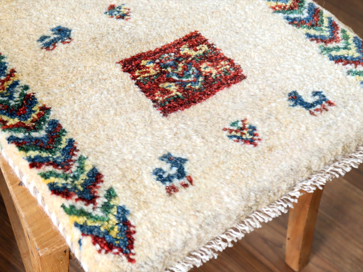 Key:ギャッベ ギャベ Gabbeh, イラン, 遊牧民, 手織り, 手紡ぎ, ペルシャ, 手織り絨毯, 座布団ギャッベ, ミニギャッベ, 無染色,アイボリー, 羊毛, グレー, ベージュ, 1点もの, 現品販売, ウール100%, 無染色 天然繊維 ミニギャベ, Gabbeh, Iran Persian rug, Hand Knotted, ガラタバザール