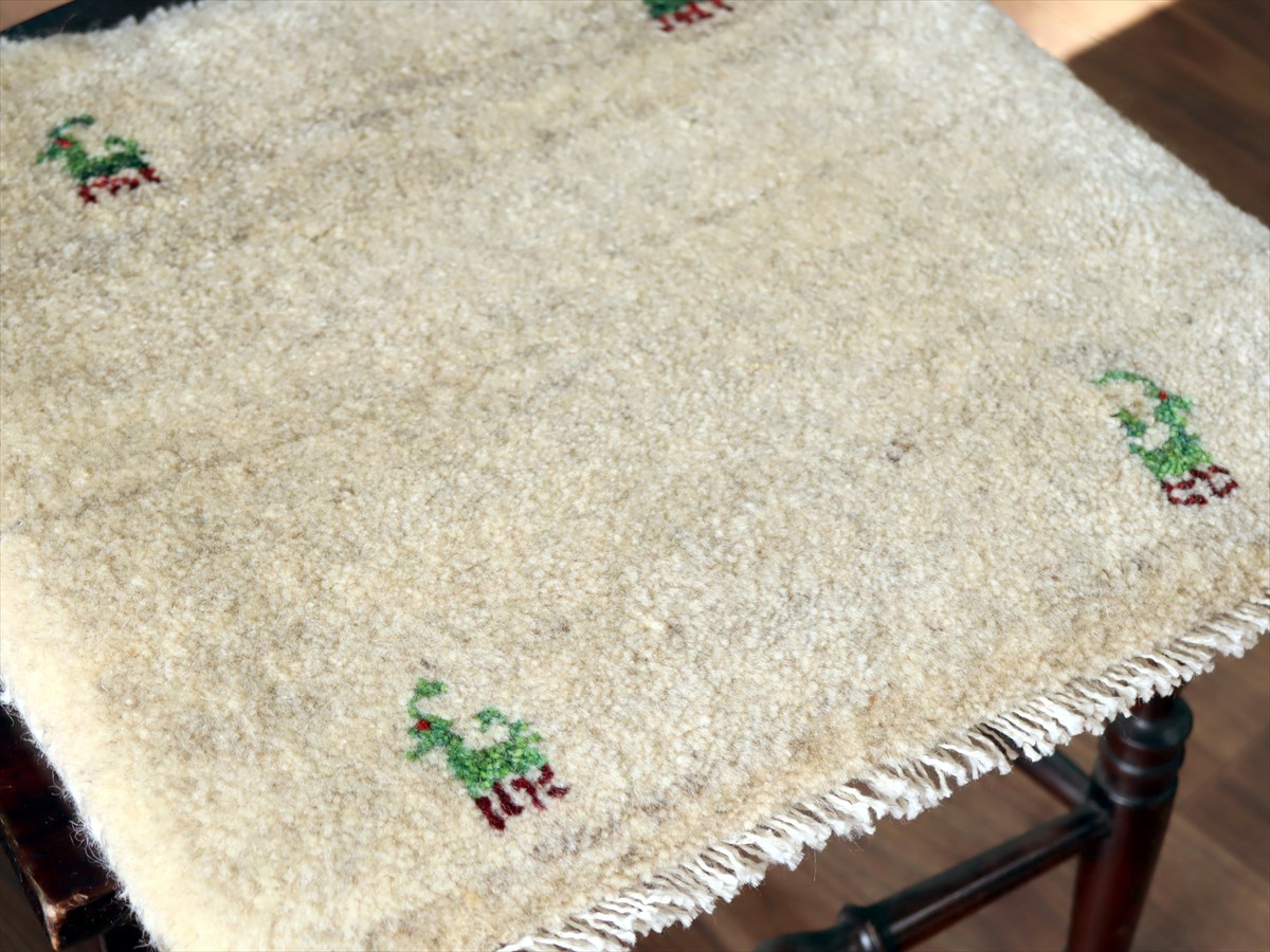 ギャッベ イラン産手織り 座布団サイズ40×42cm ナチュラルアイボリー 動物モチーフ