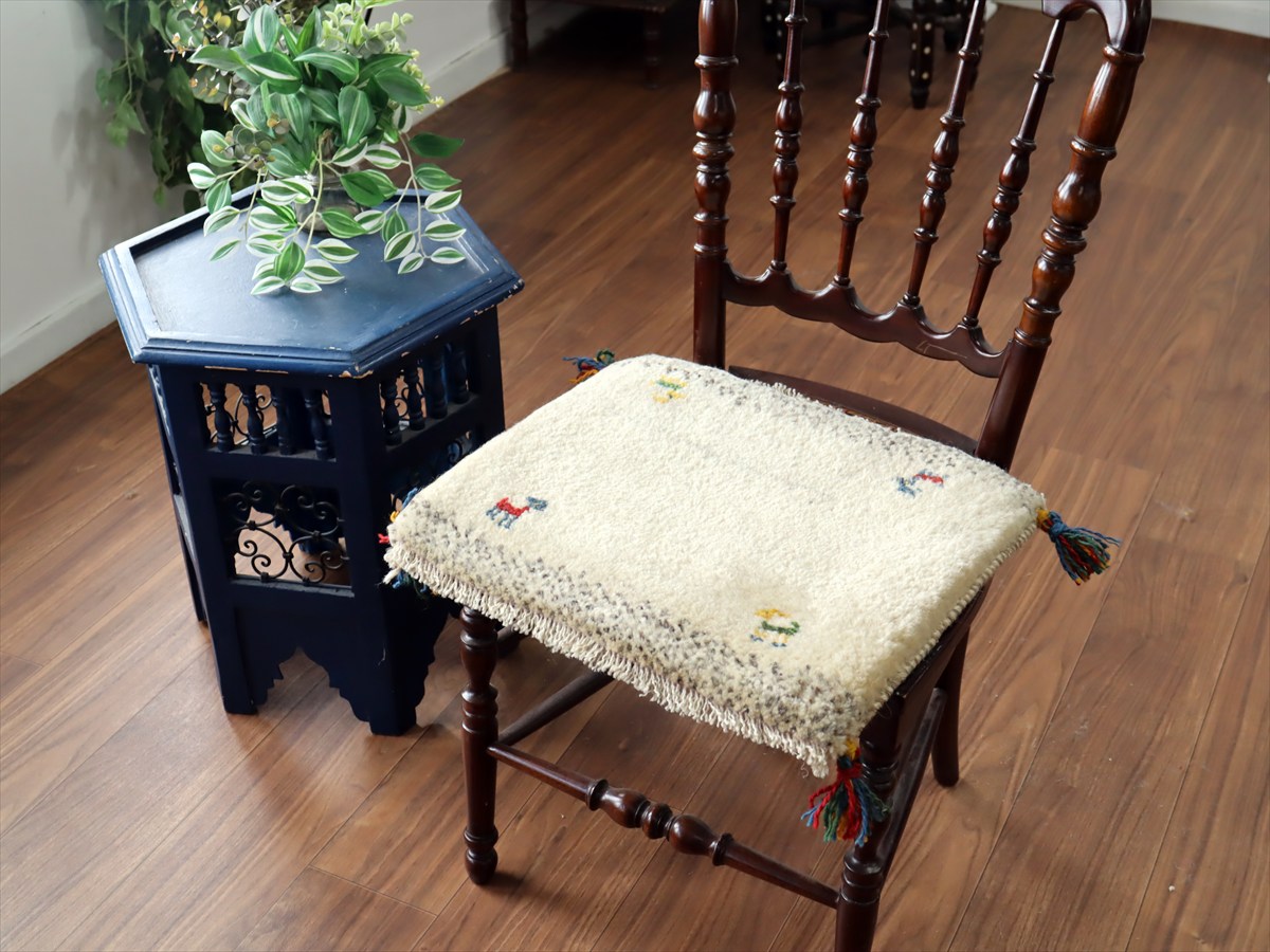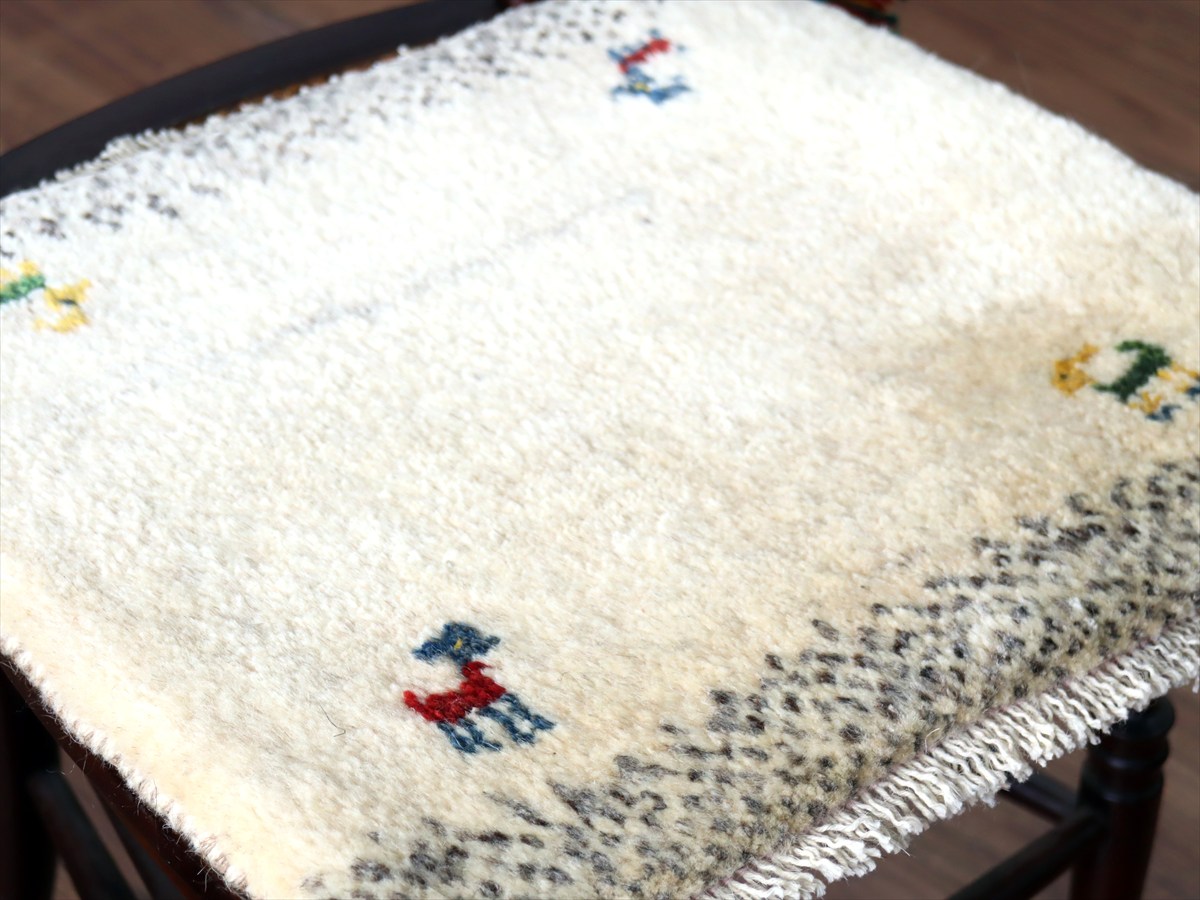 ギャッベ イラン産手織り 座布団サイズ40×45cm ナチュラルアイボリー 動物モチーフ