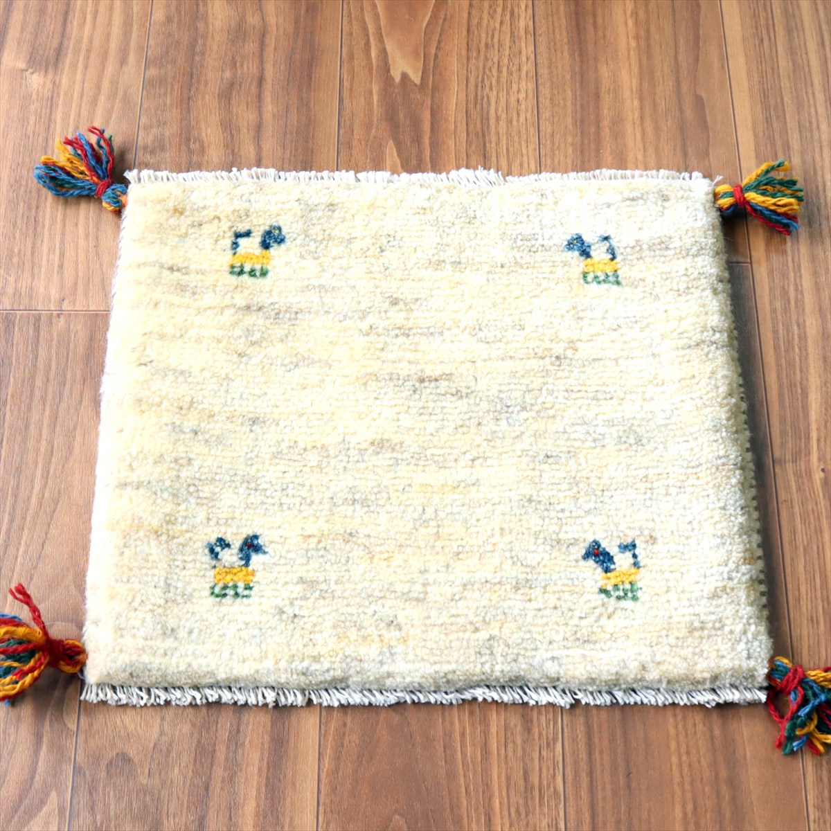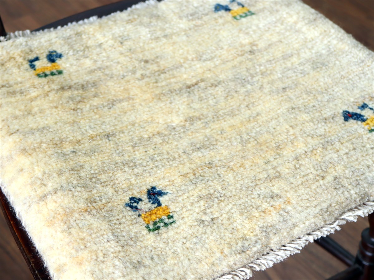ギャッベ イラン産手織り 座布団サイズ38×44cm ナチュラルアイボリー 動物モチーフ