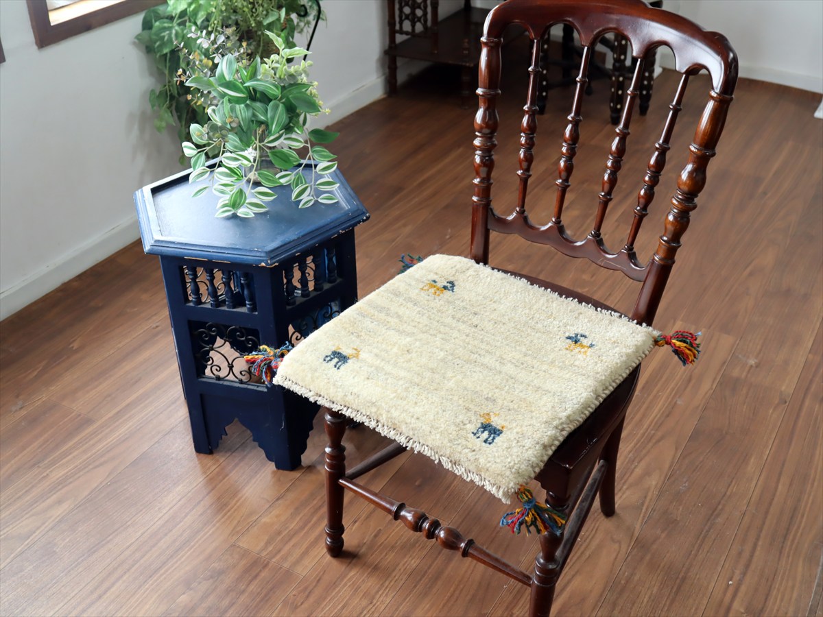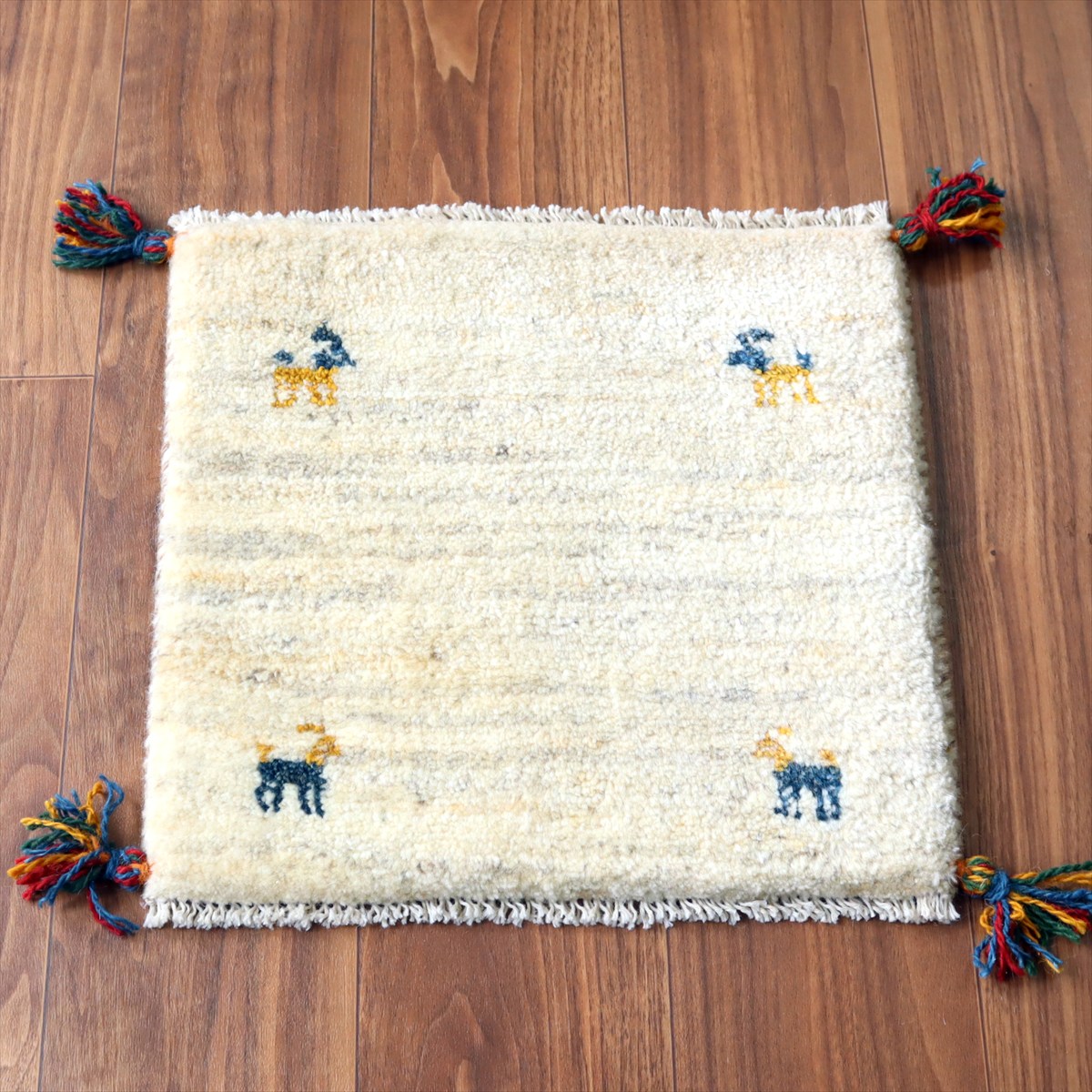 ギャッベ イラン産手織り 座布団サイズ41×42cm ナチュラルアイボリー 動物モチーフ